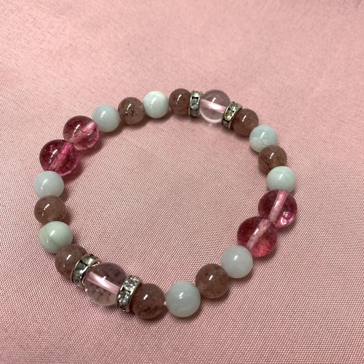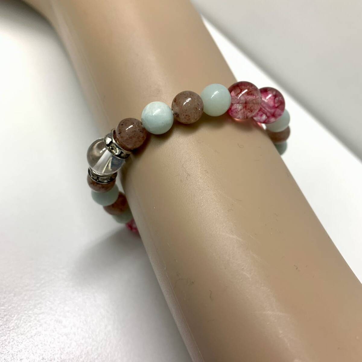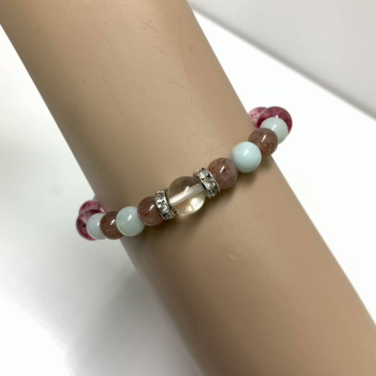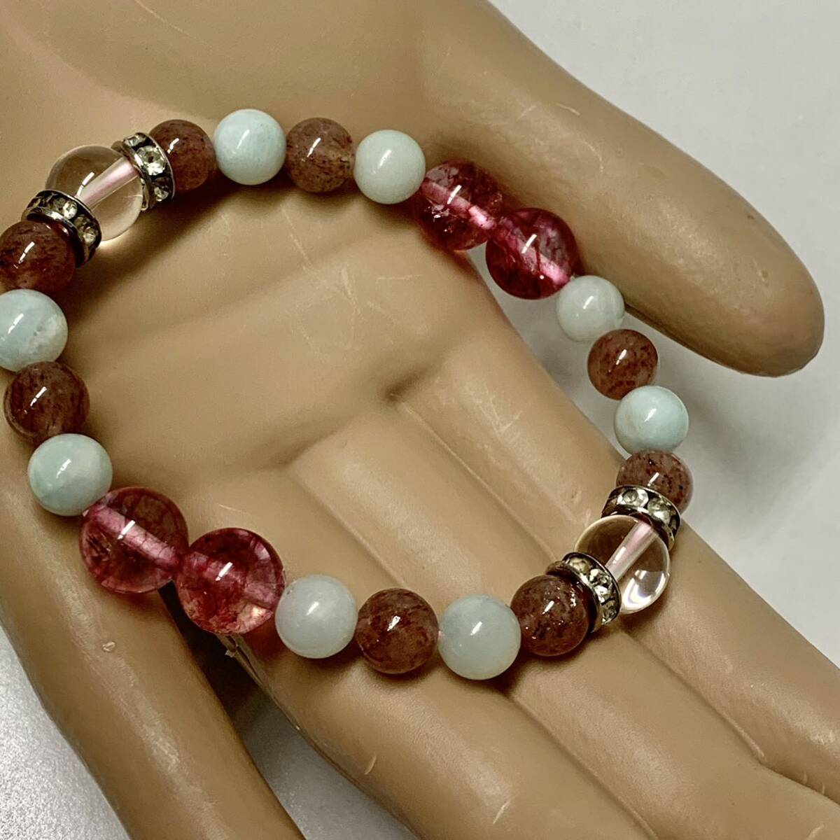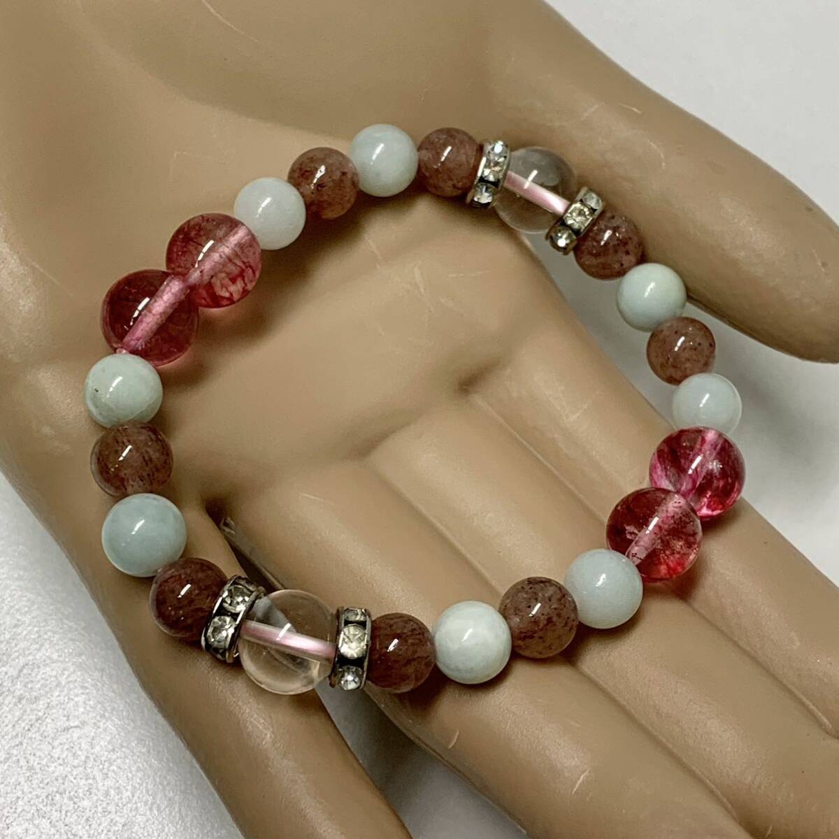 アマゾナイト ストベリークォーツ トルマリンオーラー/内径18 天然石ブレスレット