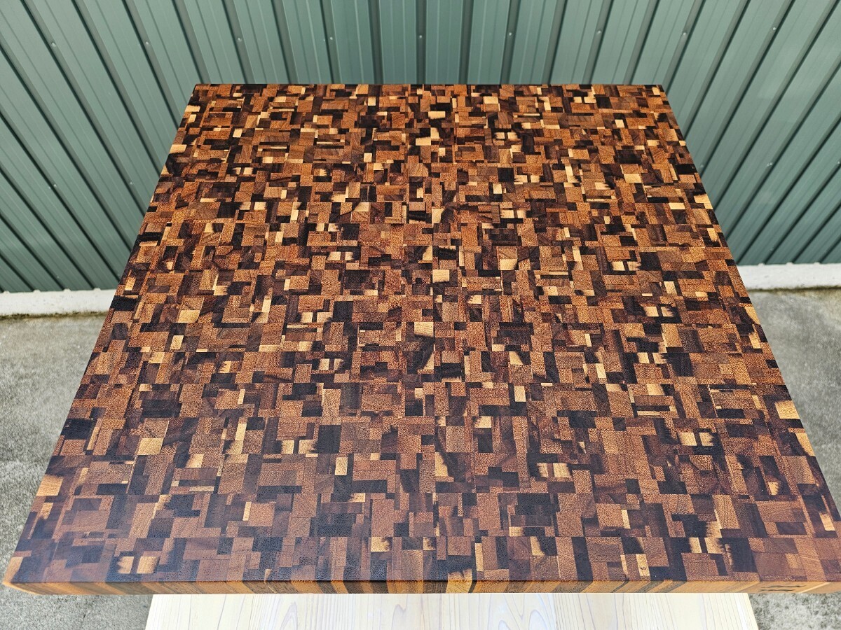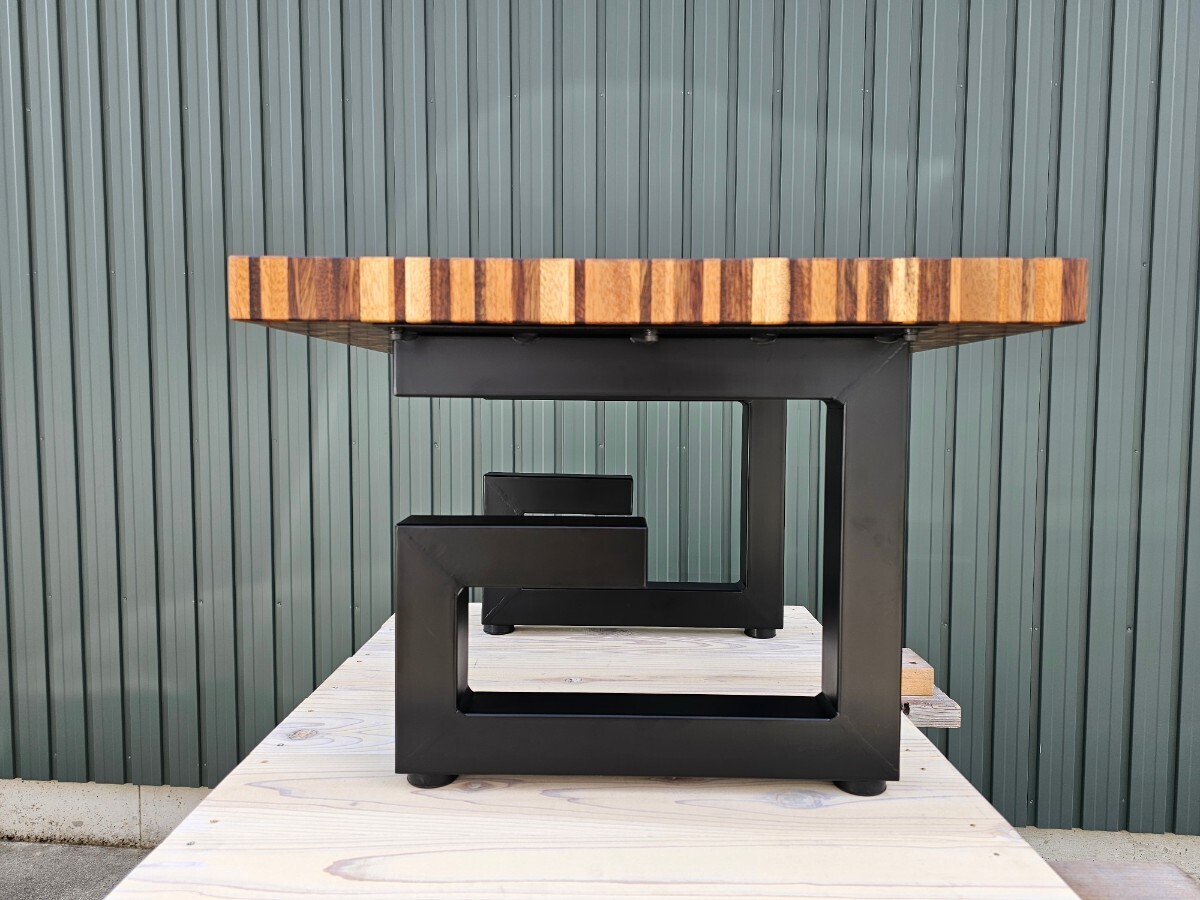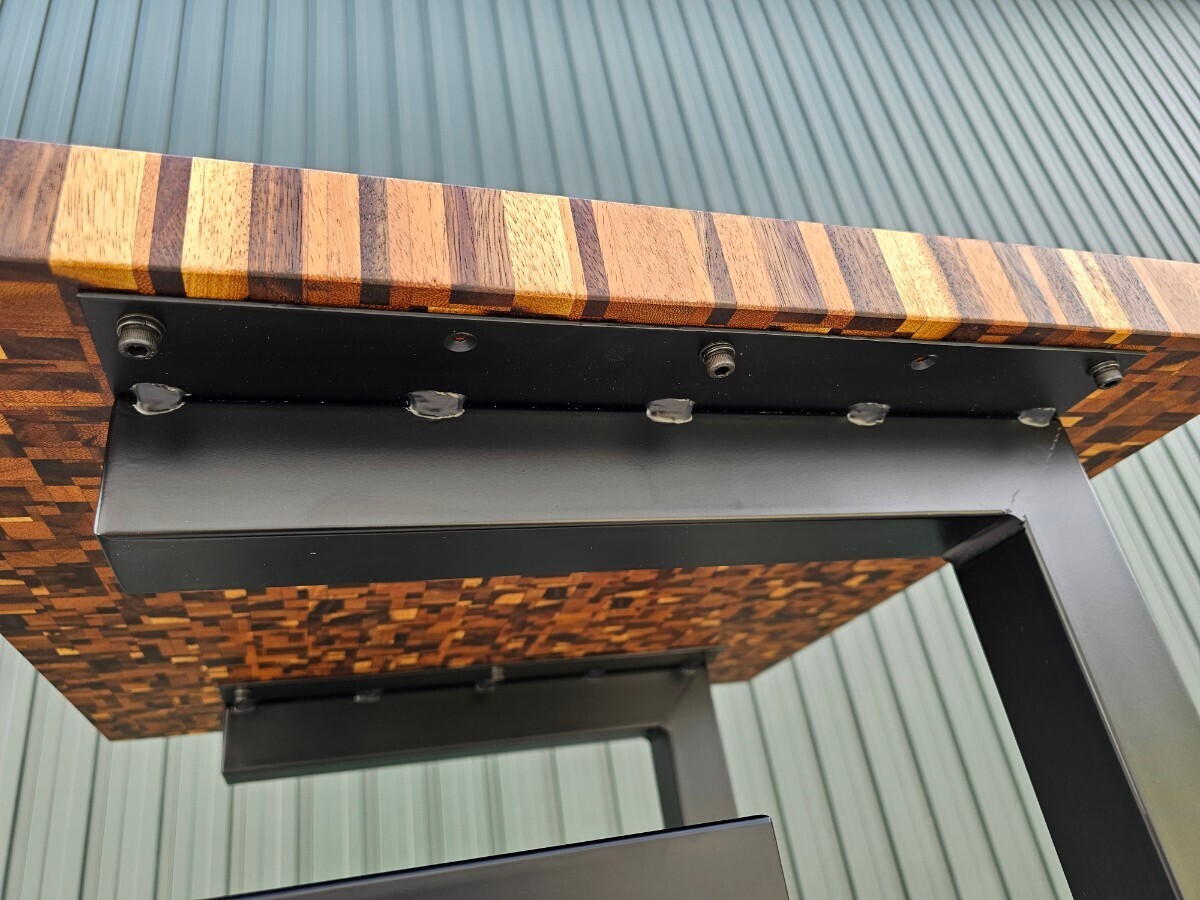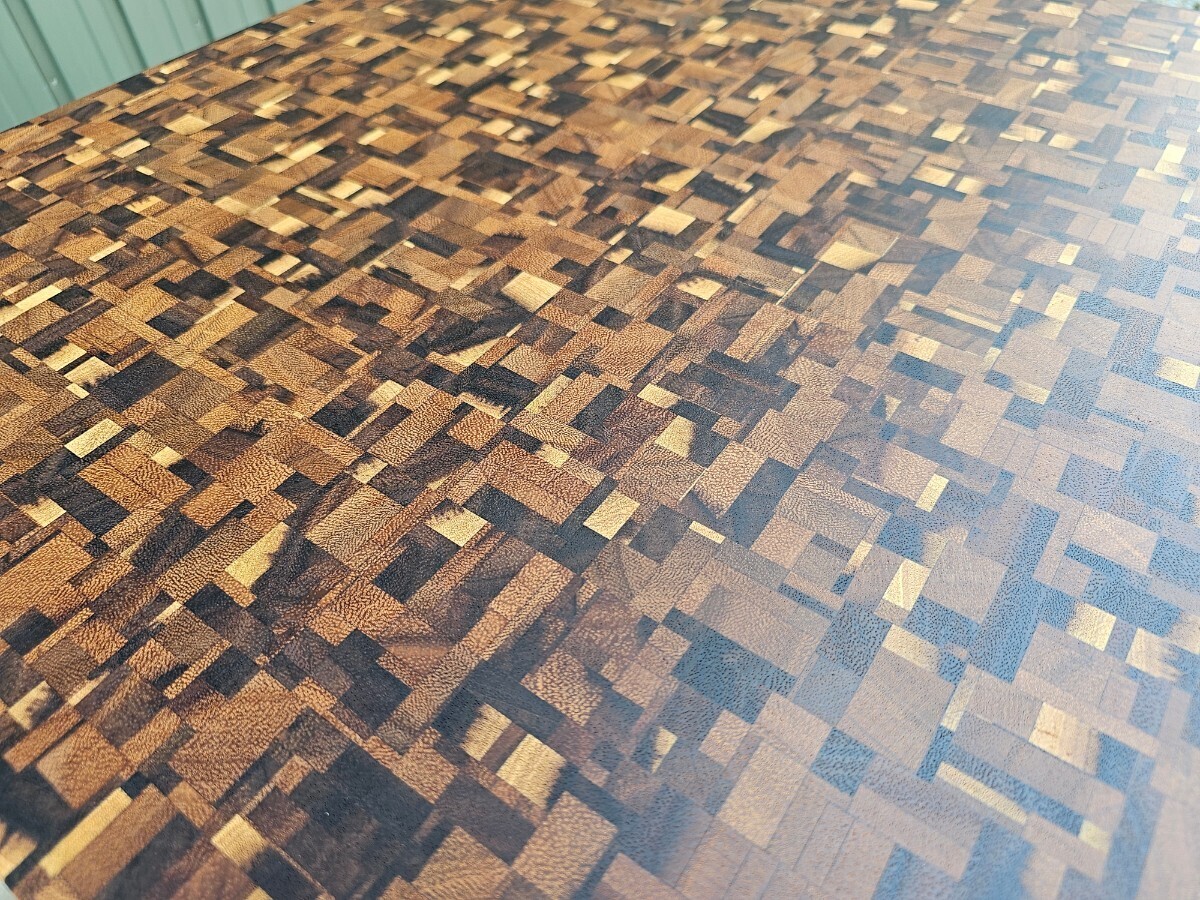 様々な色が混じってますがモンキーポッドのみを使用しています。1枚の板からそれぞれ色の違う部分を切り出して組み合わせて造りました。