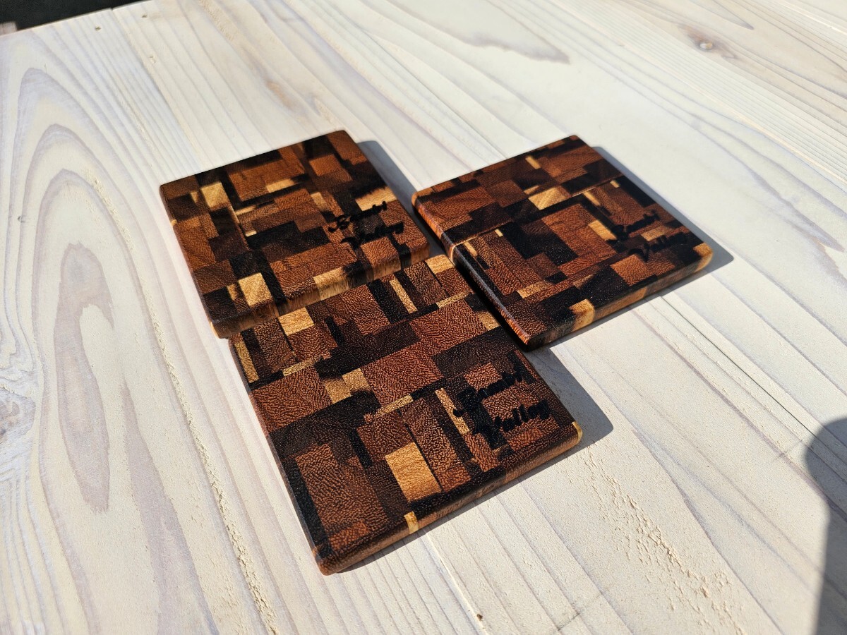 少し端材が出たので同デザインのコースターも無料でお付け致します。3枚だけですが是非お使い下さい。