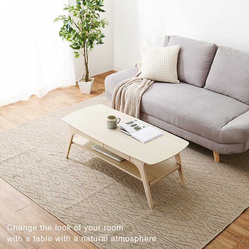 なめらかな曲線とスタイリッシュなシルエットにこだわった木目調のセンターテーブル。