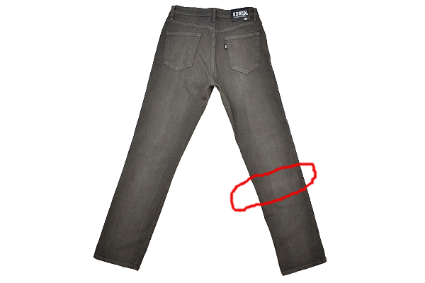 よく見ると・・後ろ右ひざ下付近に部分的な色落ちが見られますが全体的に見ると大きくは目立たず、まだまだご活躍いただけるかと思います。