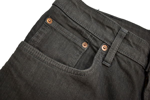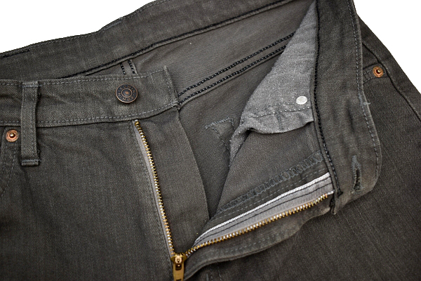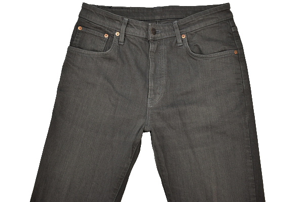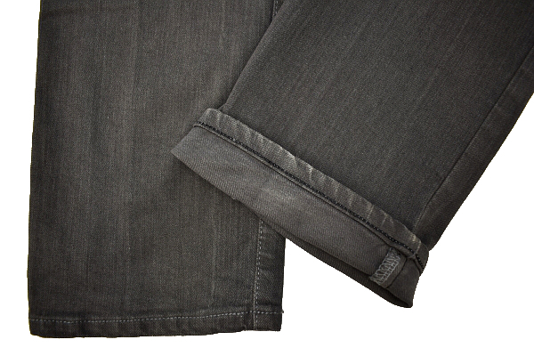 ブラック フレックスデニム(明るめでチャコールグレーにも見えます) ストレッチ素材 レーヨン混合 ストレートジーンズ チェーンステッチ