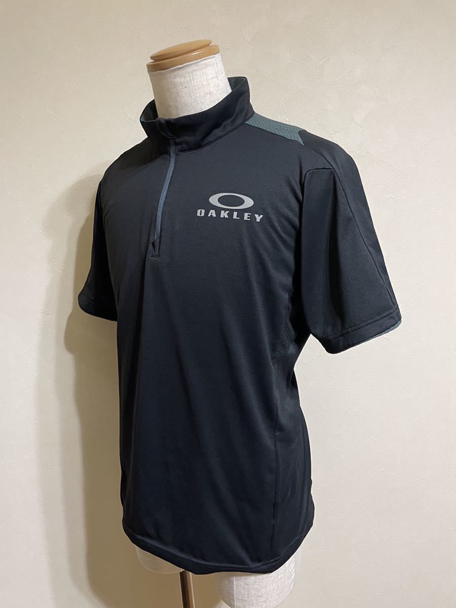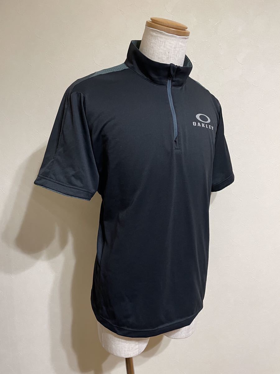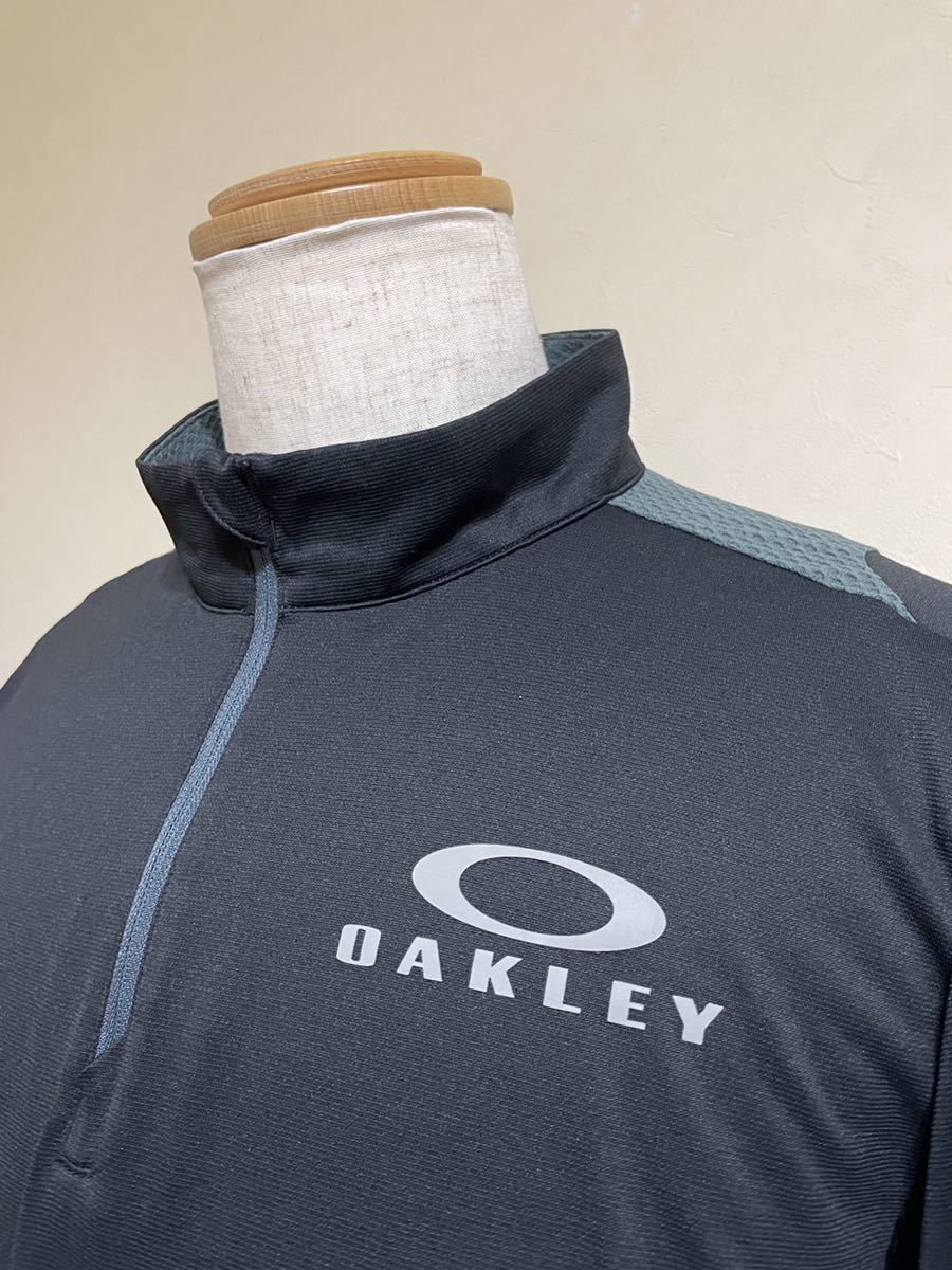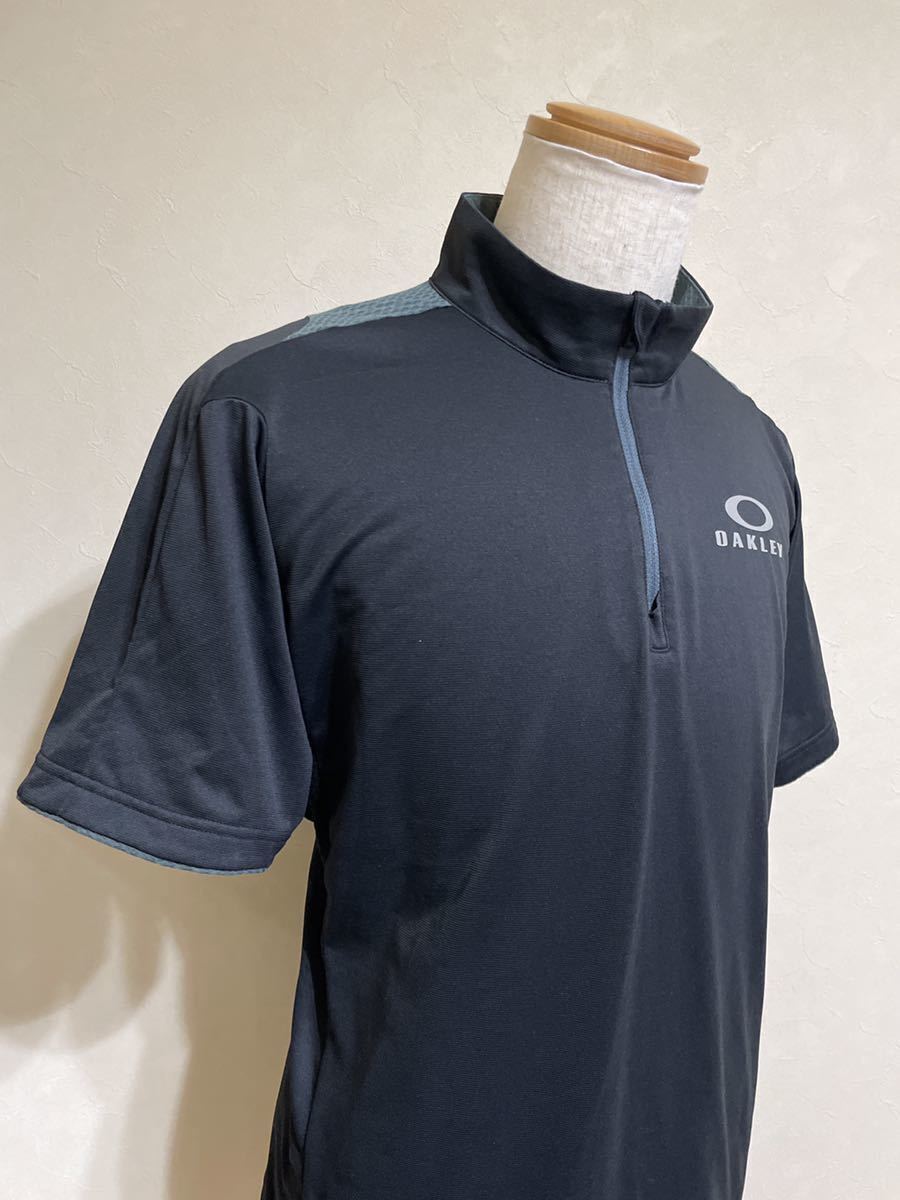【良品】 OAKLEY オークリー ゴルフ ウェア 切替し ドライ ハーフジップ プルオーバー トップス サイズ2XL 半袖 黒