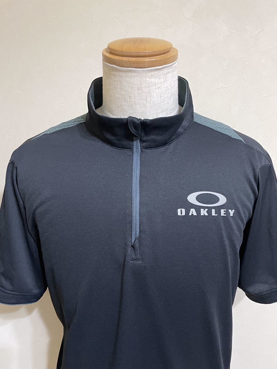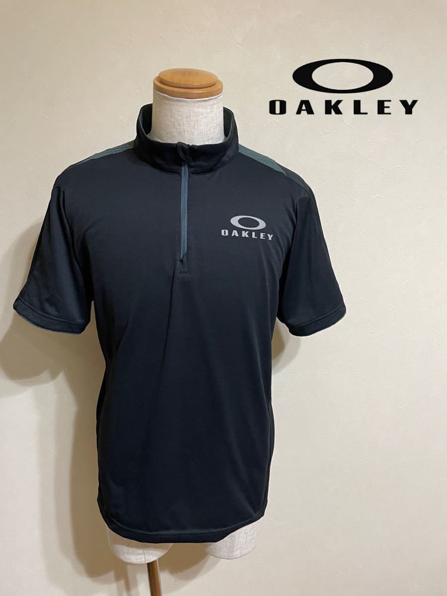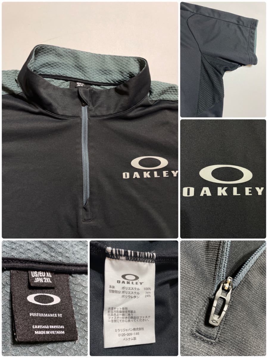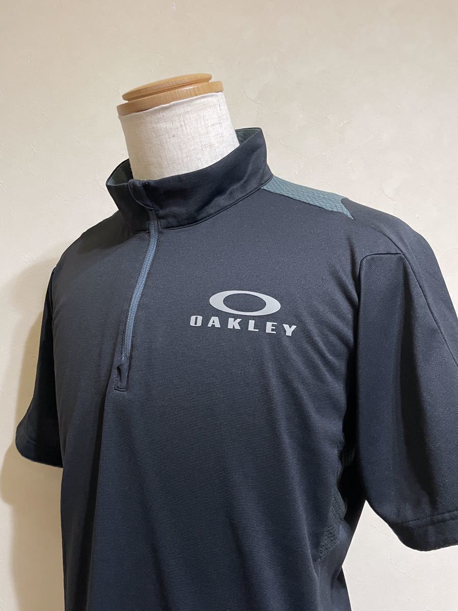 【良品】 OAKLEY オークリー ゴルフ ウェア 切替し ドライ ハーフジップ プルオーバー トップス サイズ2XL 半袖 黒