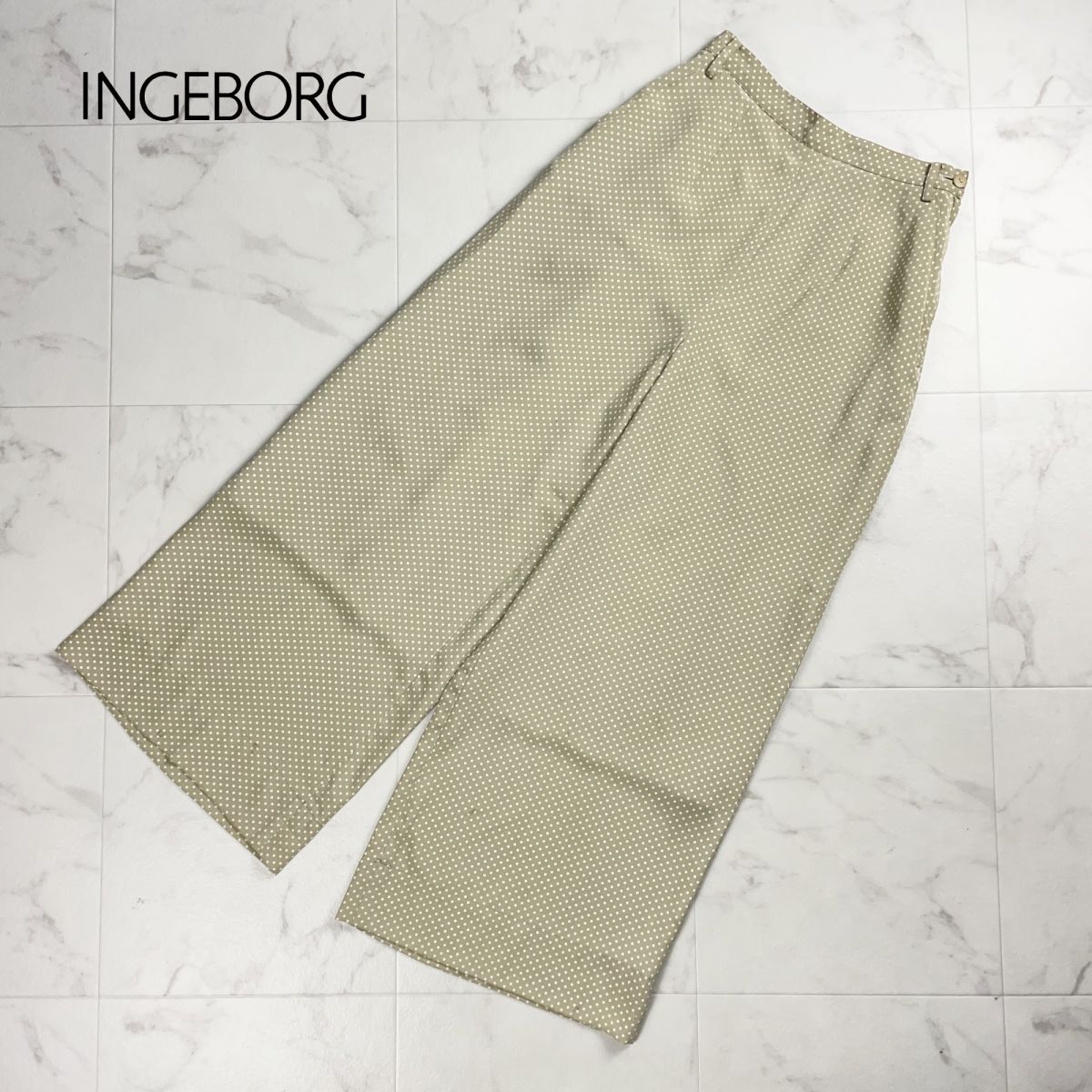 INGEBORG インゲボルグ サイドジップ ドット柄 ワイドパンツ ボトムス レディース ベージュ サイズM*RC15