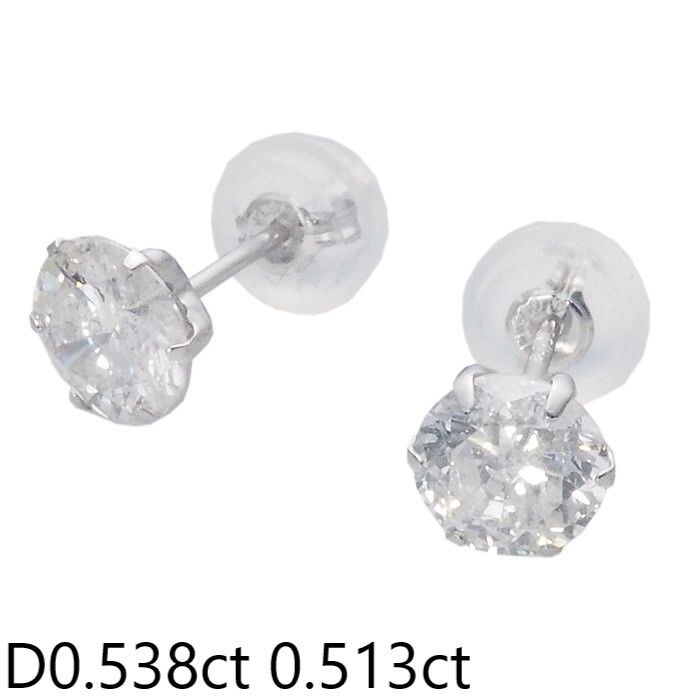 詳細:ノーブランド I/J/I-1 ダイヤモンド/0.538ct 0.513ct Pt900 1粒ダイヤ スタッド ピアス ソーティング付き 仕上済