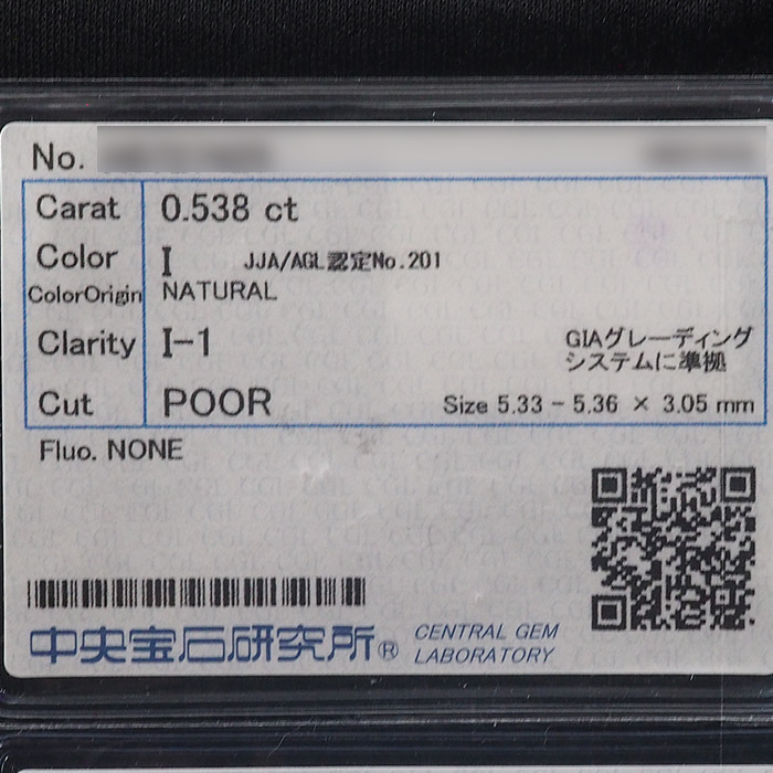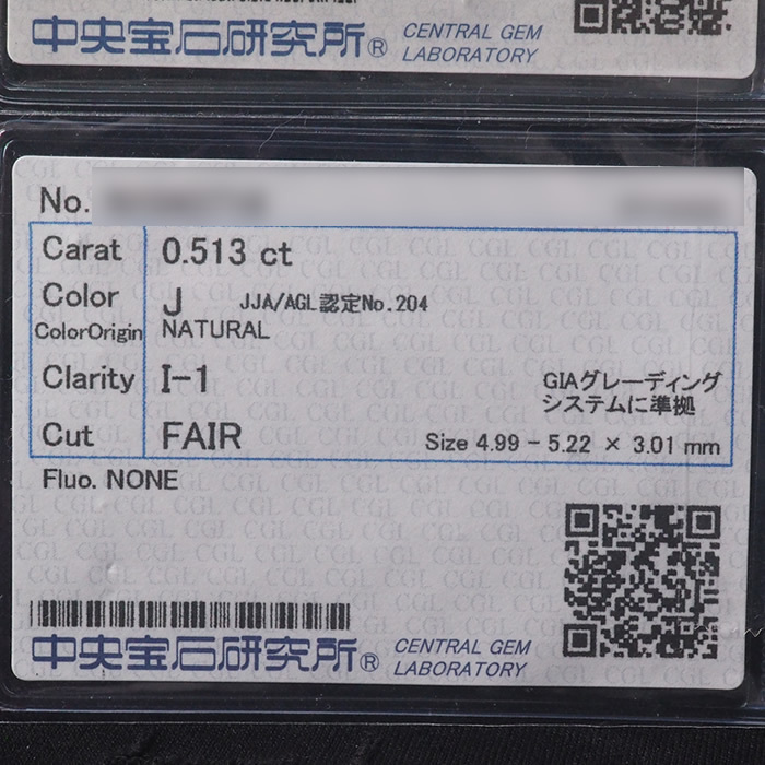 カラー【J】クラリティ【I-1】カット【FAIR】