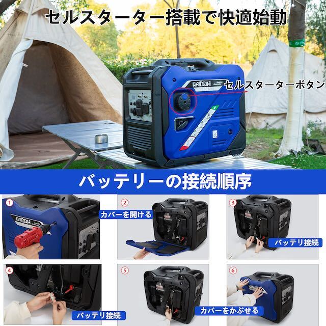 発電機 インバーター 静音:バッテリー付きワンプッシュ式誰でもワンプッシュで簡単にエンジンを始動することができます。