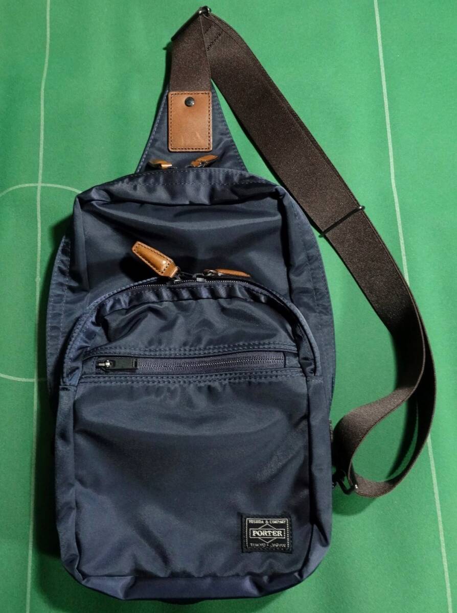 □ポーター 丸井 VOICE 共同開発 ナイロンツイル素材 ワンショルダー ボディバッグ ダークネイビー 美品!!!□