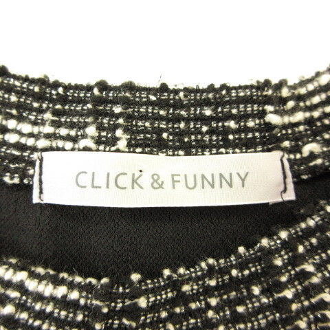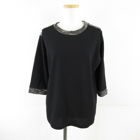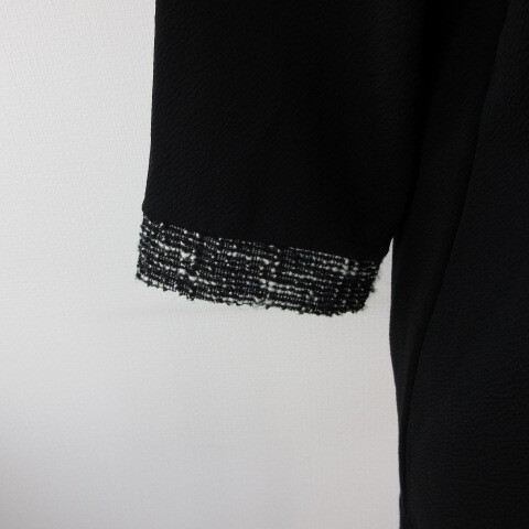 CLICK&FUNNY カットソー 七分袖 ツイード 黒 *T145 レディース
