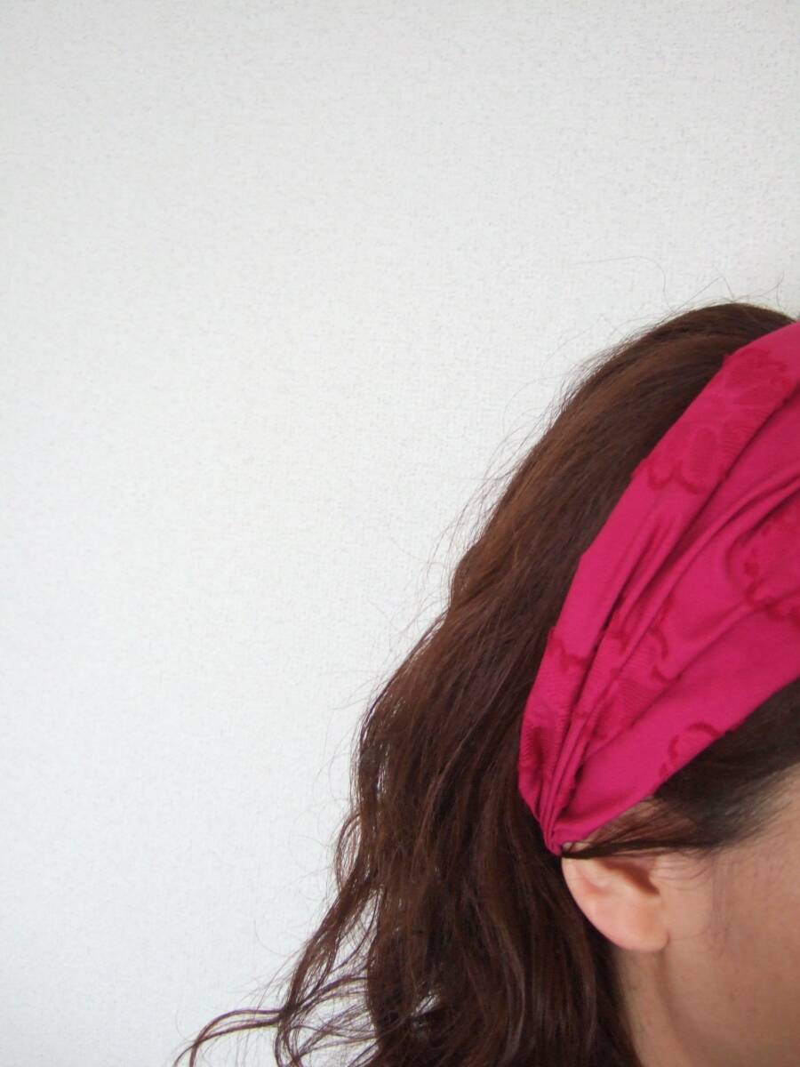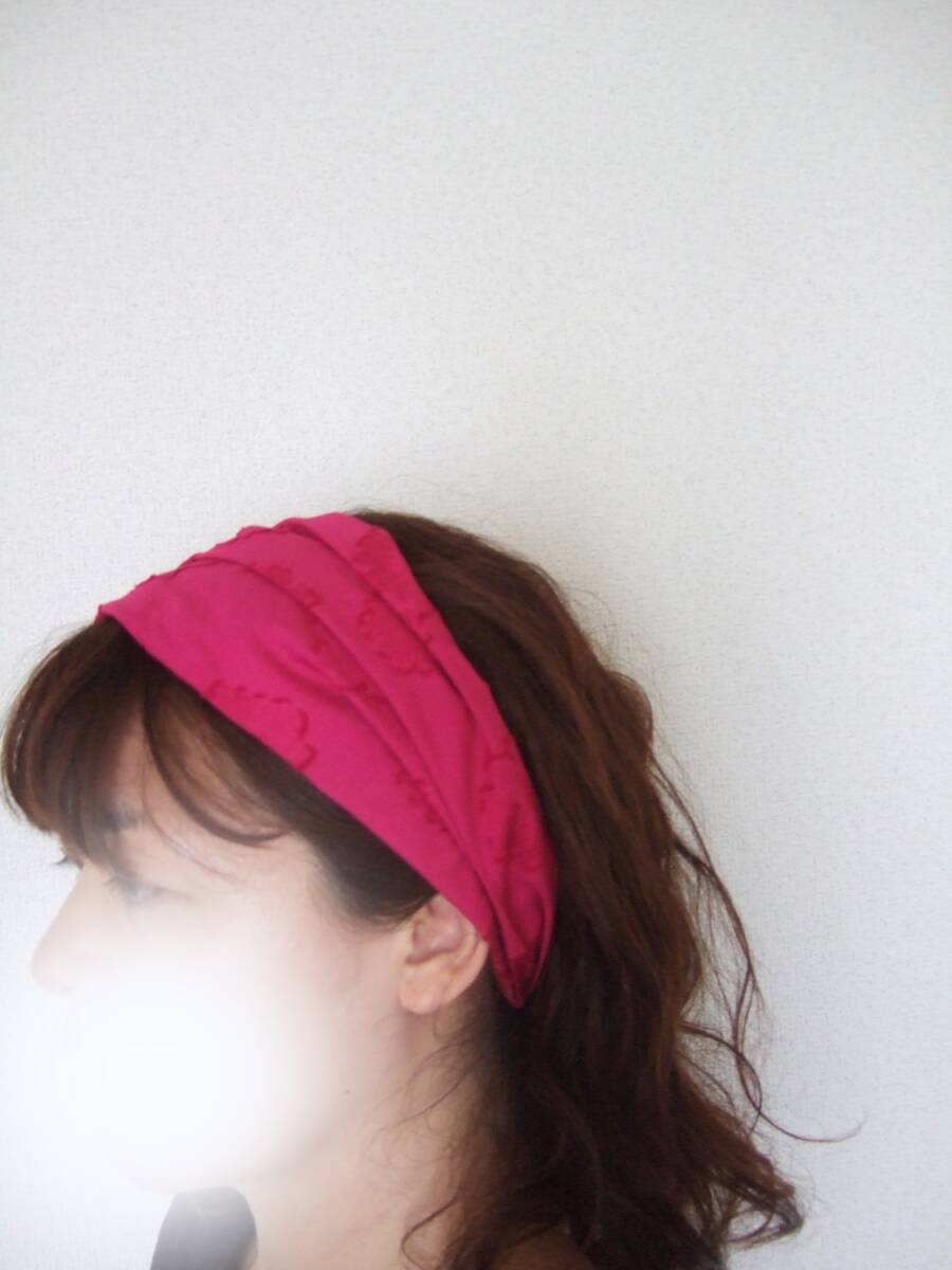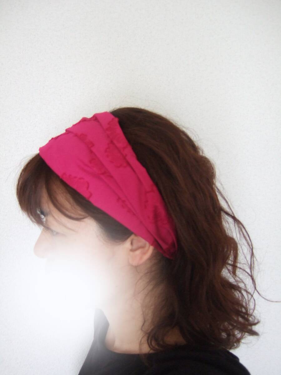 ★即決★ハンドメイド アジアンな大人可愛さ 差し色に ショッピングピンク 浮かし花コットンのゆるターバン**ヘアバンド