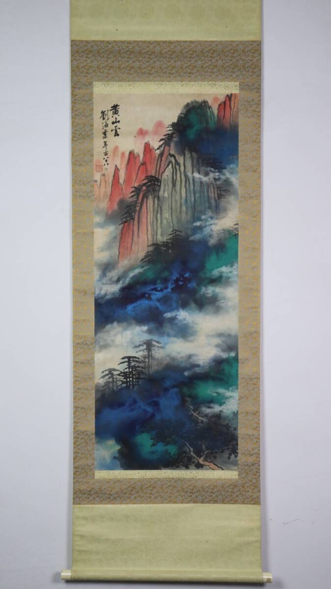 中国書画 掛け軸 近現代 劉海粟書「黄山雲」紙本立軸 書道巻物 真筆逸品 肉筆保証 唐物 時代物 古美術 LOT-8164 | |||