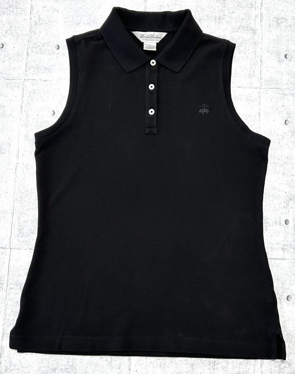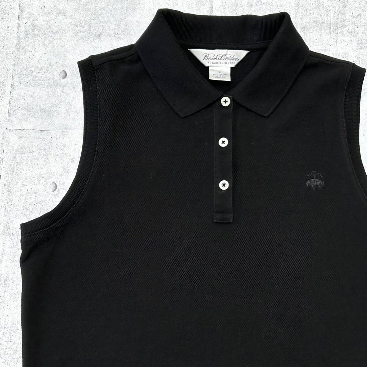 Brooks Brothers ノースリーブ ポロシャツ ブルックスブラザーズ  刺繍 ワンポイント ロゴボタン 袖なし 鹿の子 ブラック 早3980