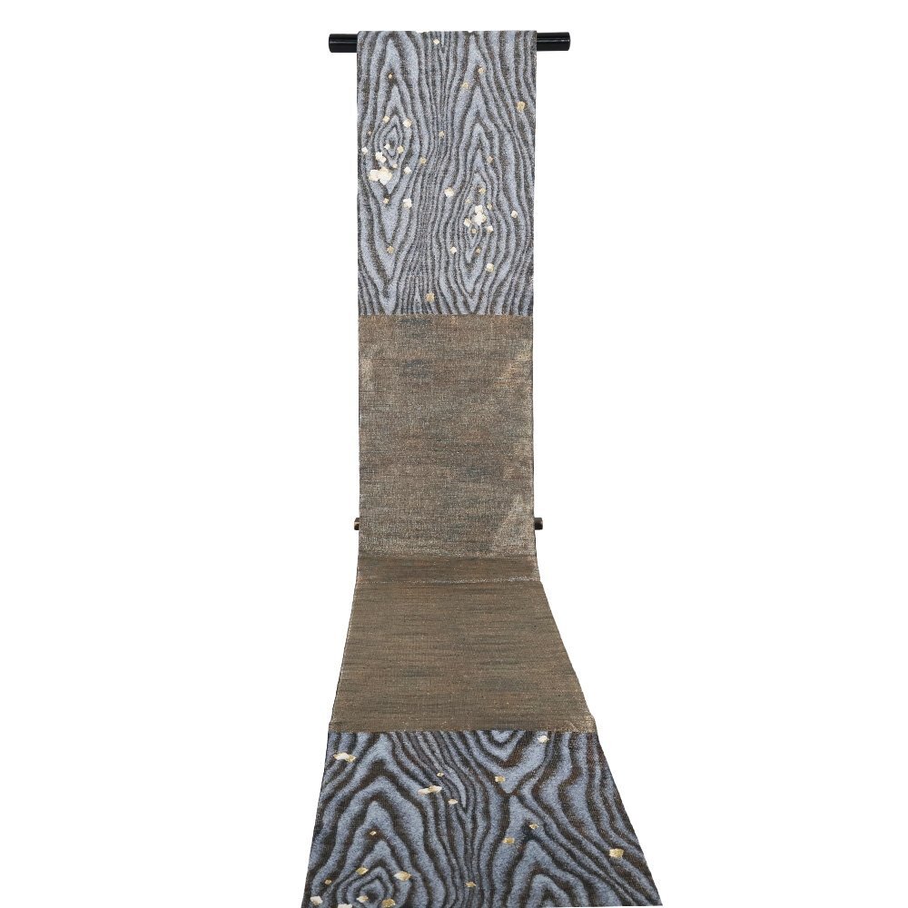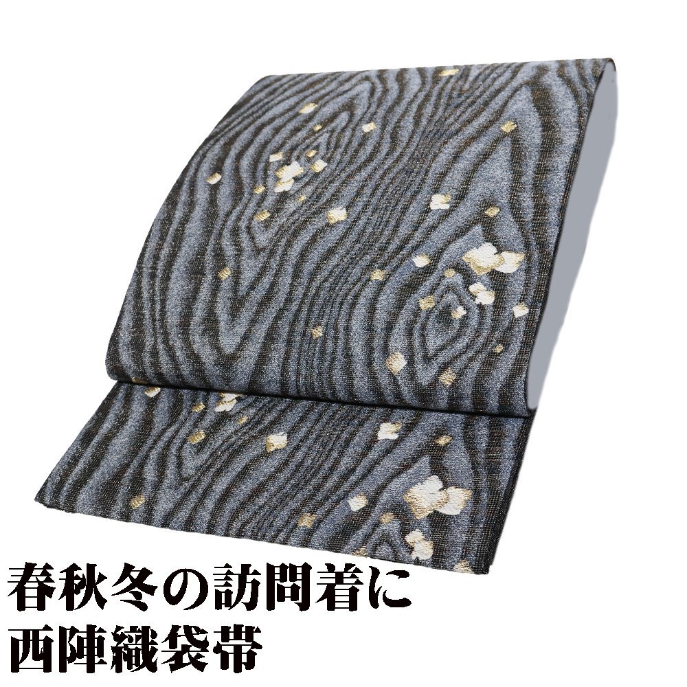 | 西陣織袋帯 グレー・紫・金・暈し地 木目調・小格子 仕立て上がり | |