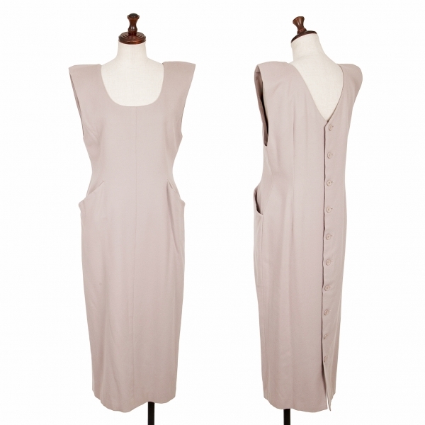 ヨシエイナバYOSHIE INABA ウールバックボタンノースリーブワンピース ワイングレーM位 |