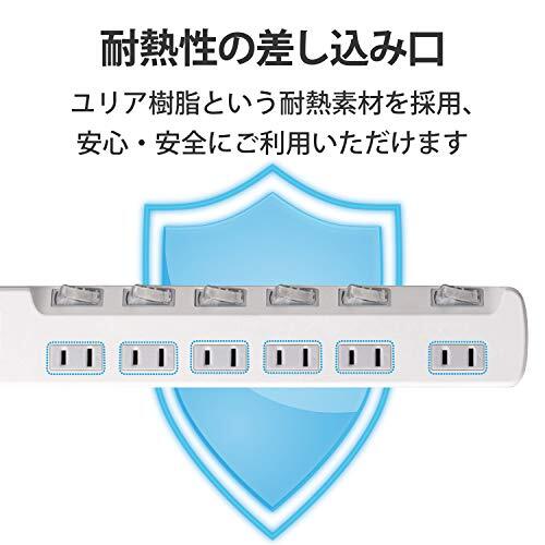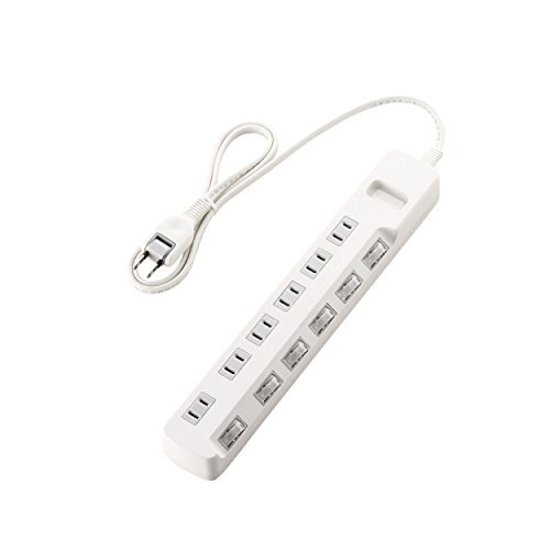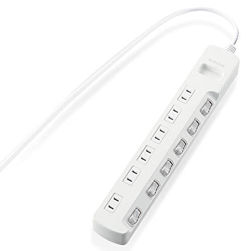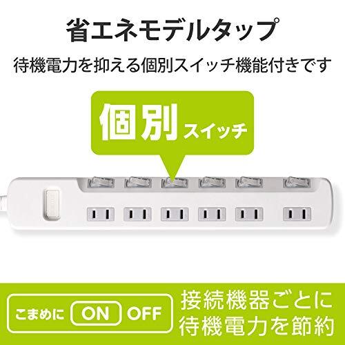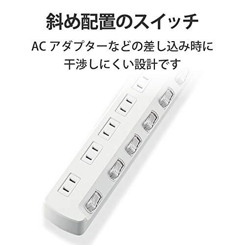 「エレコム 電源タップ 個別スイッチ 省エネ スイングプラグ 6個口 1m ホワイト T-E5A-2610WH」▼4953103456785▼(商品説明)6個口・単品 1m T-E5A-2610WH・・Color:単品Size:1mStyle:6個口・接続機器ごとにON/OFFでき、待機電力を個別に節約できる個別スイッチが付いた省エネタップです。・接続機器ごとにON/OFFでき、待機電力を個別に節約できる個別スイッチが付いた省エネタップです。・ACアダプタや大きめのプラグを接続してもスイッチに干渉しにくい、斜め配置のスイッチを採用しています。・差込口には耐熱性に優れたユリア樹脂を使用していますので、万一の発熱の際にも融解しにくく、電気火災の防止に有効です。・ACアダプタを接続しても隣の差込口に干渉しにくいように、1個の差込口を離れて配置しています。説明 商品紹介 【 仕様 】 ■本体差込口形状:2ピン ■本体差込口個数:6個口 ■プラグ仕様:2ピン・スイングプラグ ■3ピン→2ピン変換アダプタ付属:× ■コード長:1.0m ■定格:125V・15A・1500W ■スイッチ:個別スイッチ ■雷ガード:× ■ほこりシャッター:× ■絶縁キャップ付きプラグ:× ■差込口キャップ付属:× ■通電表示ランプ:× ■二重被ふく:○ ■抜け止め機能:× ■スイングプラグ:○ ■マグネット:× ■壁掛け用フック:○ ■モジュラジャック付:× ■カラー:ホワイト ■材質:本体:ABS樹脂、プラグ:PVC 差込口:ユリア樹脂 ■外形寸法:幅310mm×奥行50mm×高さ32mm ※コード部分及びプラグ部分を除く ■質量:368g ■使用可能地域:本製品は日本国内の電源を想定して設計されていますので、日本国外ではご使用いただけません。 【 説明 】 ■接続機器ごとにON/OFFでき、待機電力を個別に節約できる個別スイッチが付いた省エネタップです。 ■ACアダプタや大きめのプラグを接続してもスイッチに干渉しにくい、斜め配置のスイッチを採用しています。 ■差込口には耐熱性に優れたユリア樹脂を使用していますので、万一の発熱の際にも融解しにくく、電気火災の防止に有効です。 ■ACアダプタを接続しても隣の差込口に干渉しにくいように、1個の差込口を離れて配置しています。 ■プラグの刃の根本に絶縁キャップが付いており、トラッキング現象による火災の防止に役立ちます。 ■電源コードには、社団法人日本配線器具工業会規格(JWDS0010)に適合した二重被ふくコードを採用していますので、断線や被ふく破れによる感電・火災の防止に有効です。 ■狭い場所でも配線しやすい180°スイングプラグを採用しています。 ■プラグ仕様は2ピン式で、便利な6個口タイプです。 【商品に関するお問い合わせ】 エレコム総合インフォメーションセンター TEL. 0570-084-465 FAX. 0570-050-012 受付時間 / 10:00~19:00 年中無休 ご注意(免責)>必ずお読みください ※本製品は日本国内の電源を想定して設計されていますので、日本国外ではご使用いただけません。