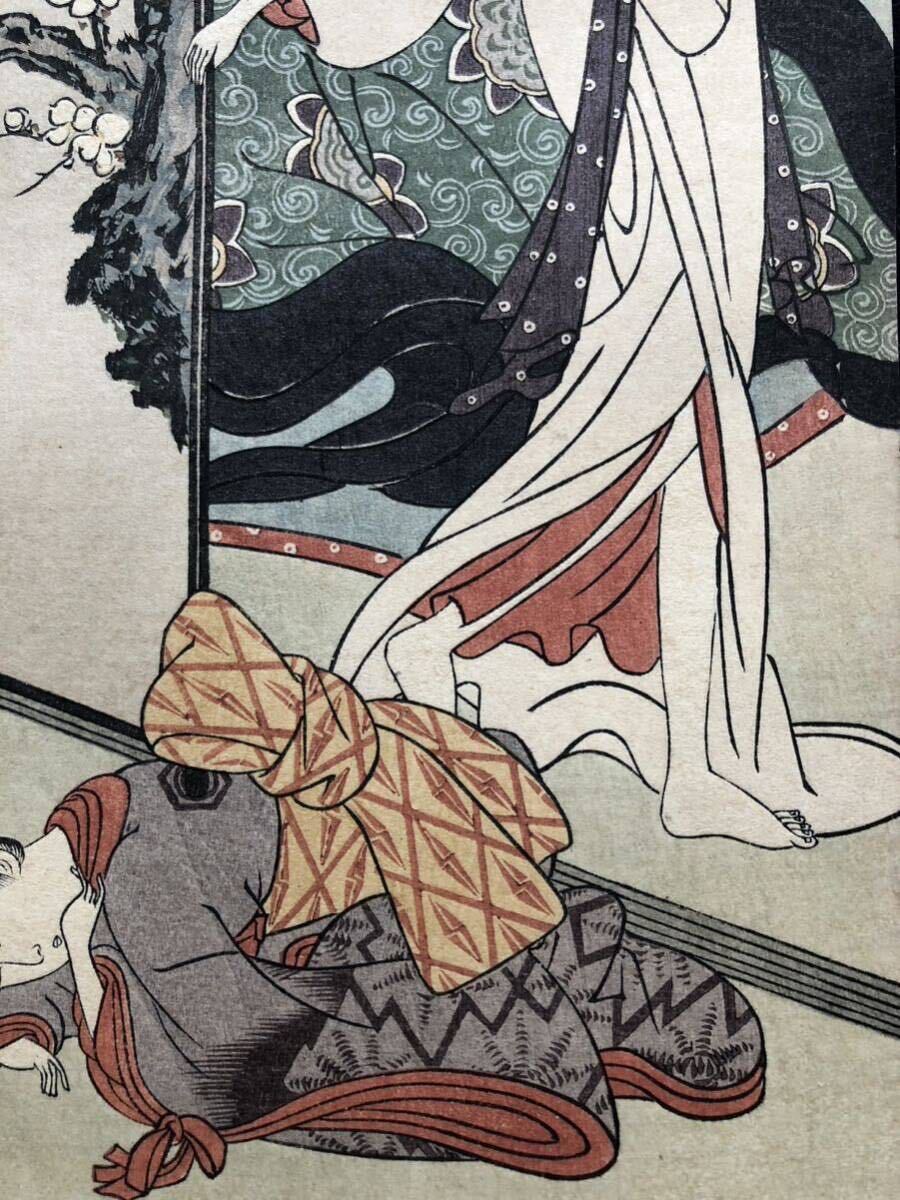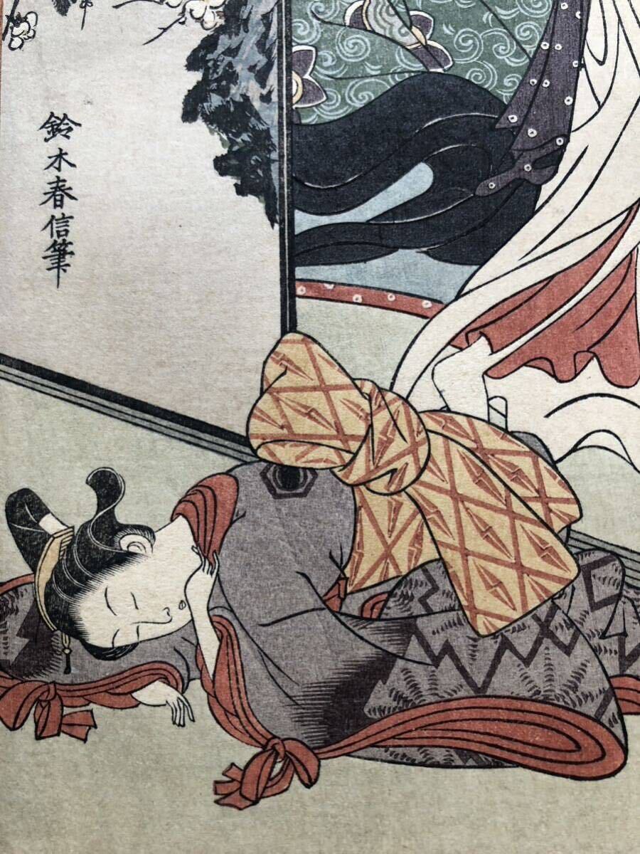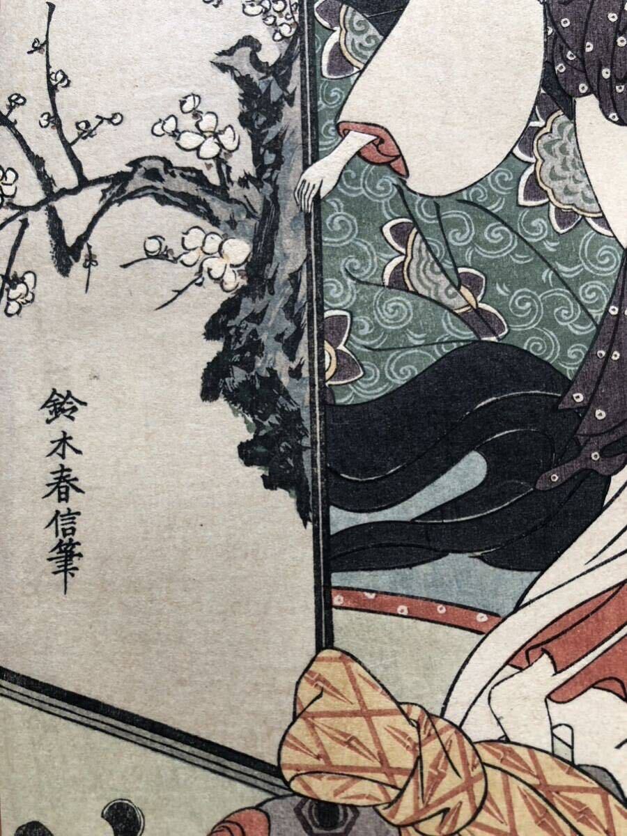 木版画 鈴木春信【梅辺二美人】短冊判 明治期 滑稽堂 秋山武右衛門版 本物保証 ■ 浮世絵 錦絵 摺物 美人画 Harunobu Ukiyoe