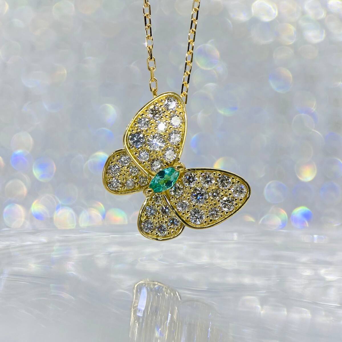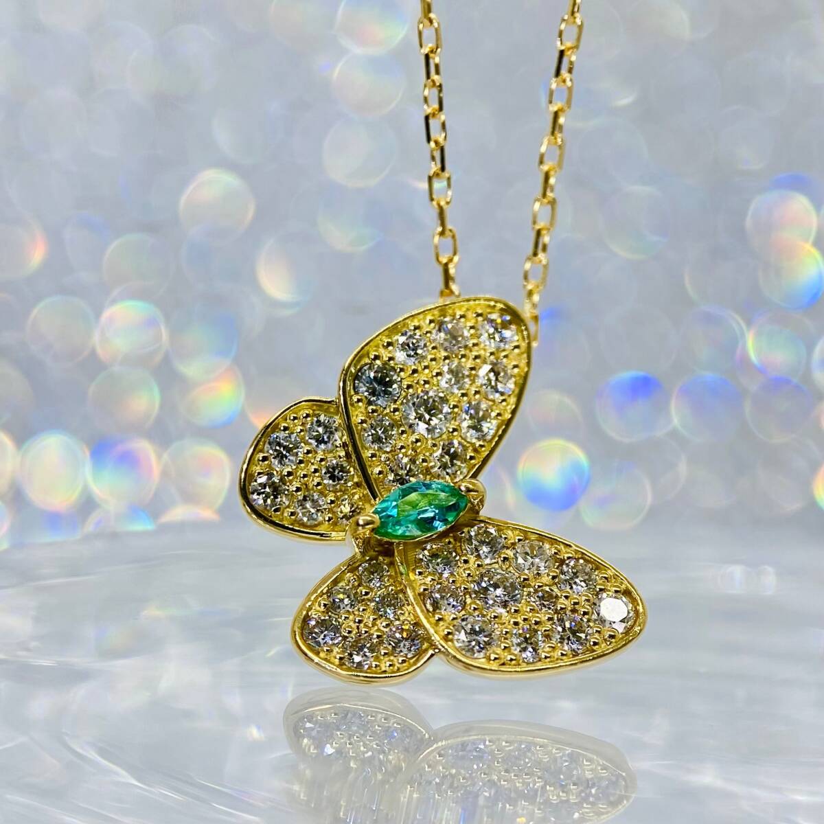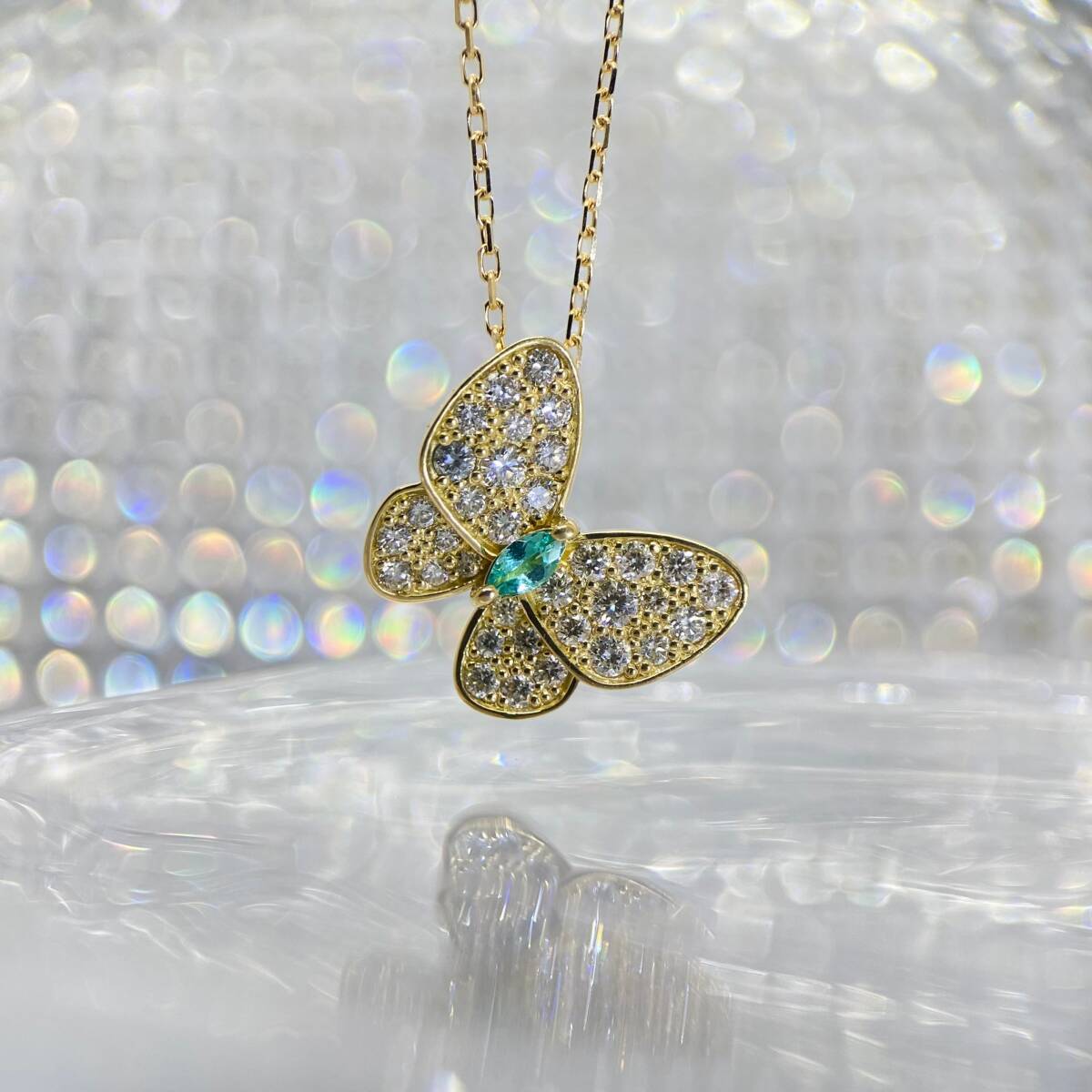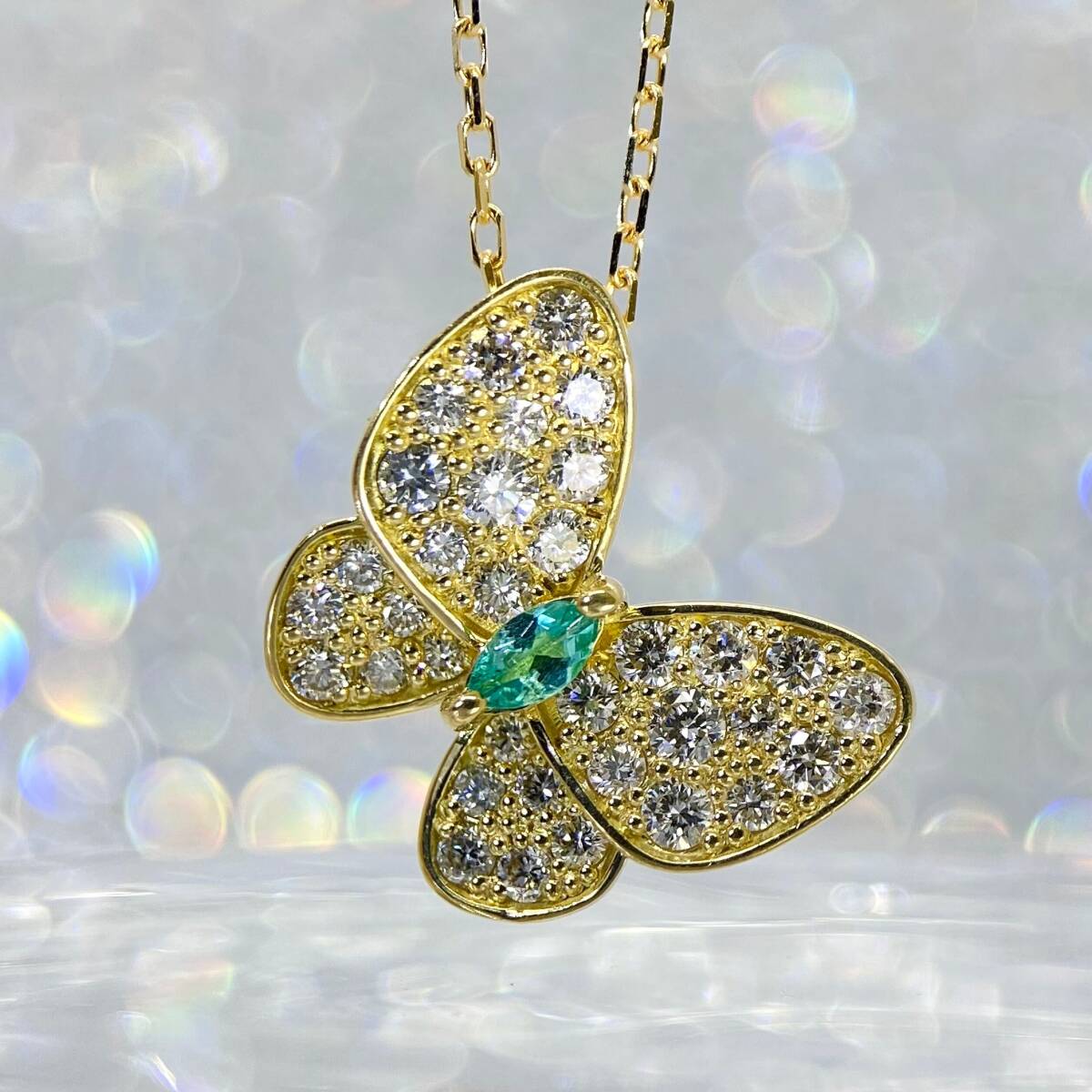 ★SALE★パライバトルマリン バタフライ パピオン ネックレス ダイヤモンド
