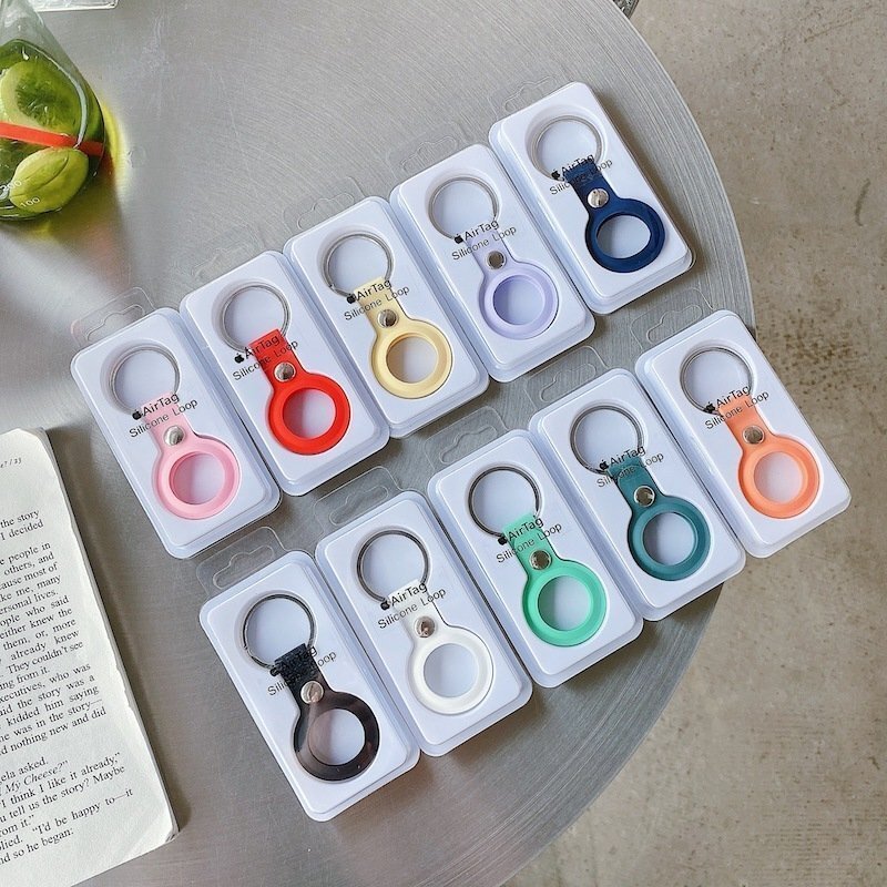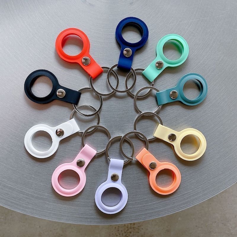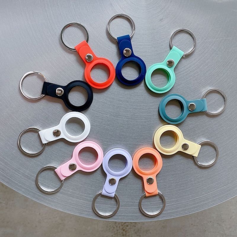 ボタンで開閉するシリコンケースでAirTagを保護します。