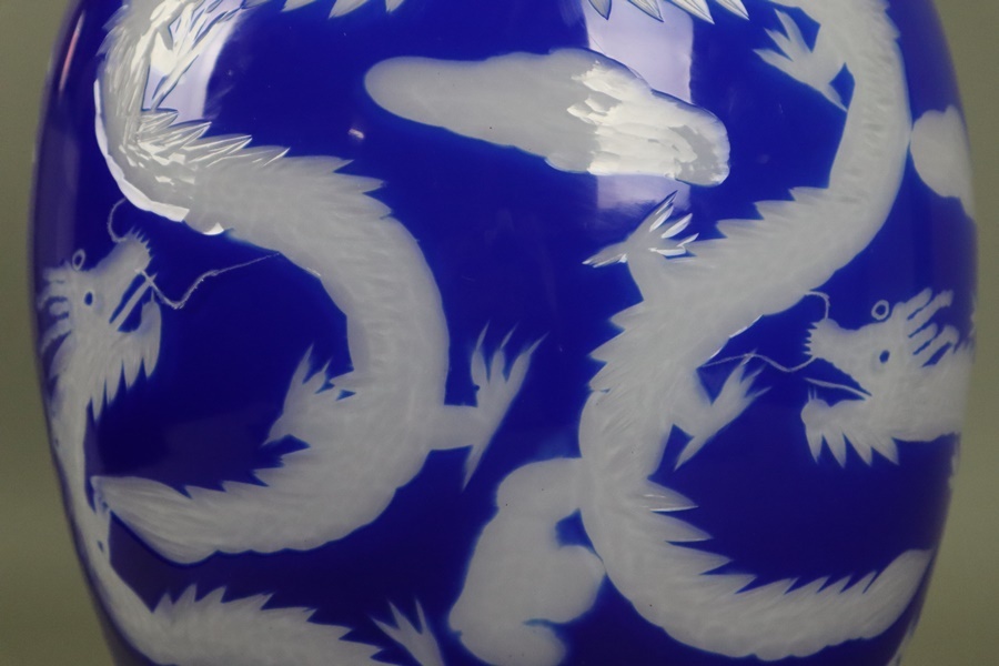 【中国美術 乾隆ガラス 乾隆硝子 龍紋 花瓶 高41cm】