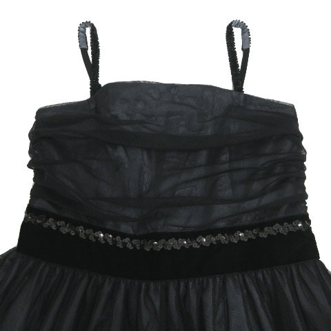 【仕様】ワンピース ドレス キャミワンピ チュール スパンコール ひざ丈 切替え 日本製 左サイドジップ留め ポケットなし 肩紐調整可能、取り外し可能