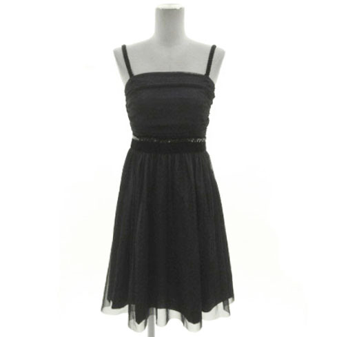 ルスーク Le souk DRESS ワンピース ドレス キャミワンピ チュール スパンコール ひざ丈 切替え 日本製 ブラック 黒 ブルーグレー 36