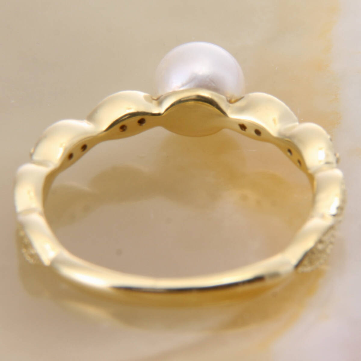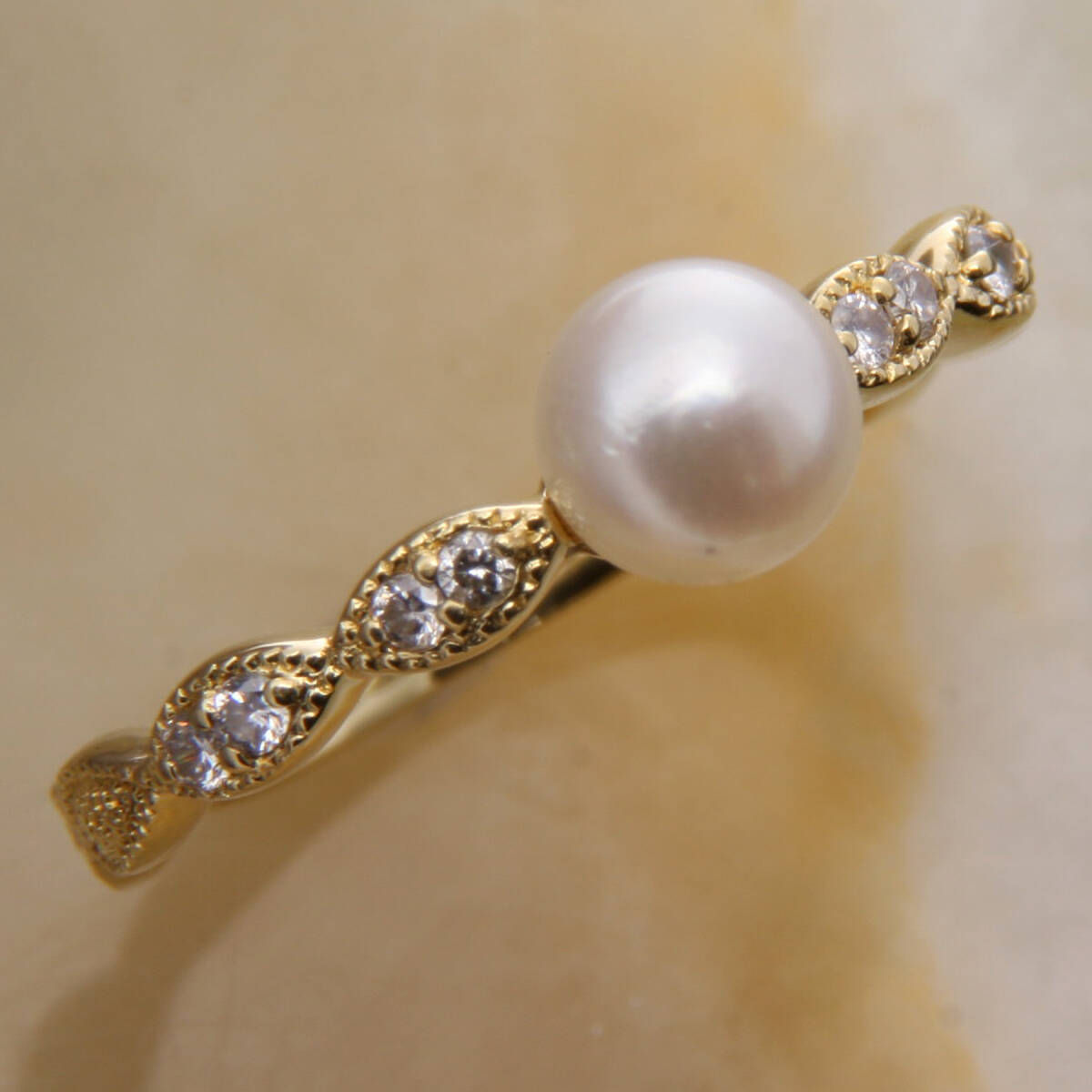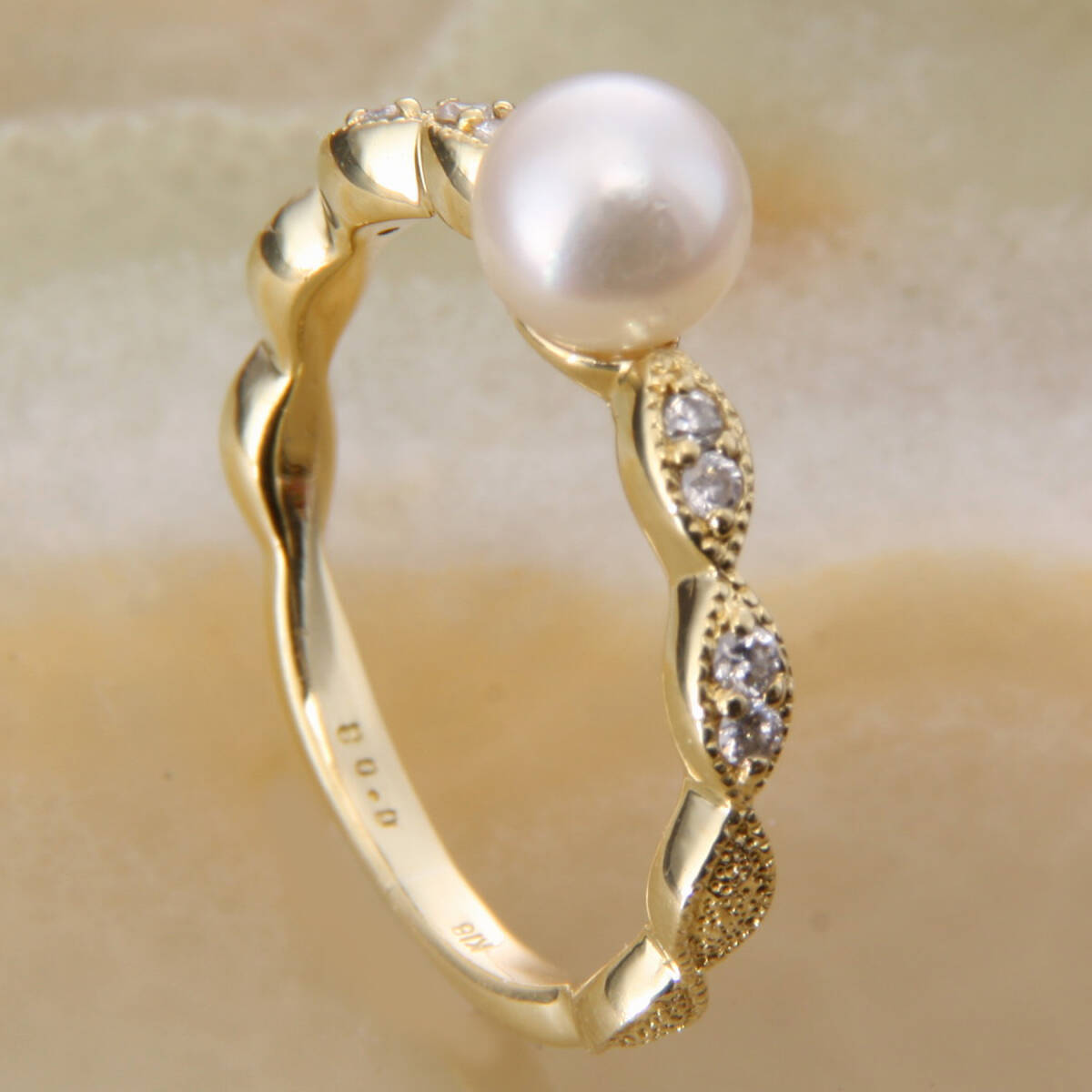 K18製、アコヤ養殖真珠とダイアモンドの7号リングです。