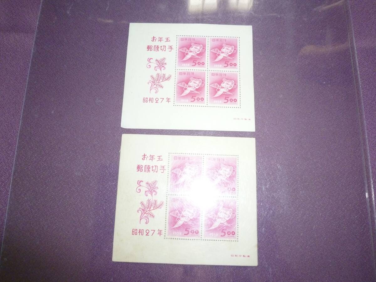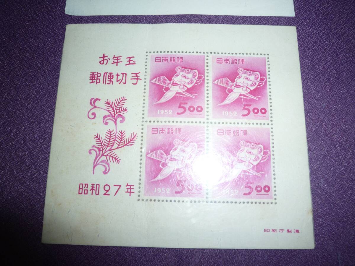 未使用 年賀 昭和27年 翁の面 小型シート 2枚