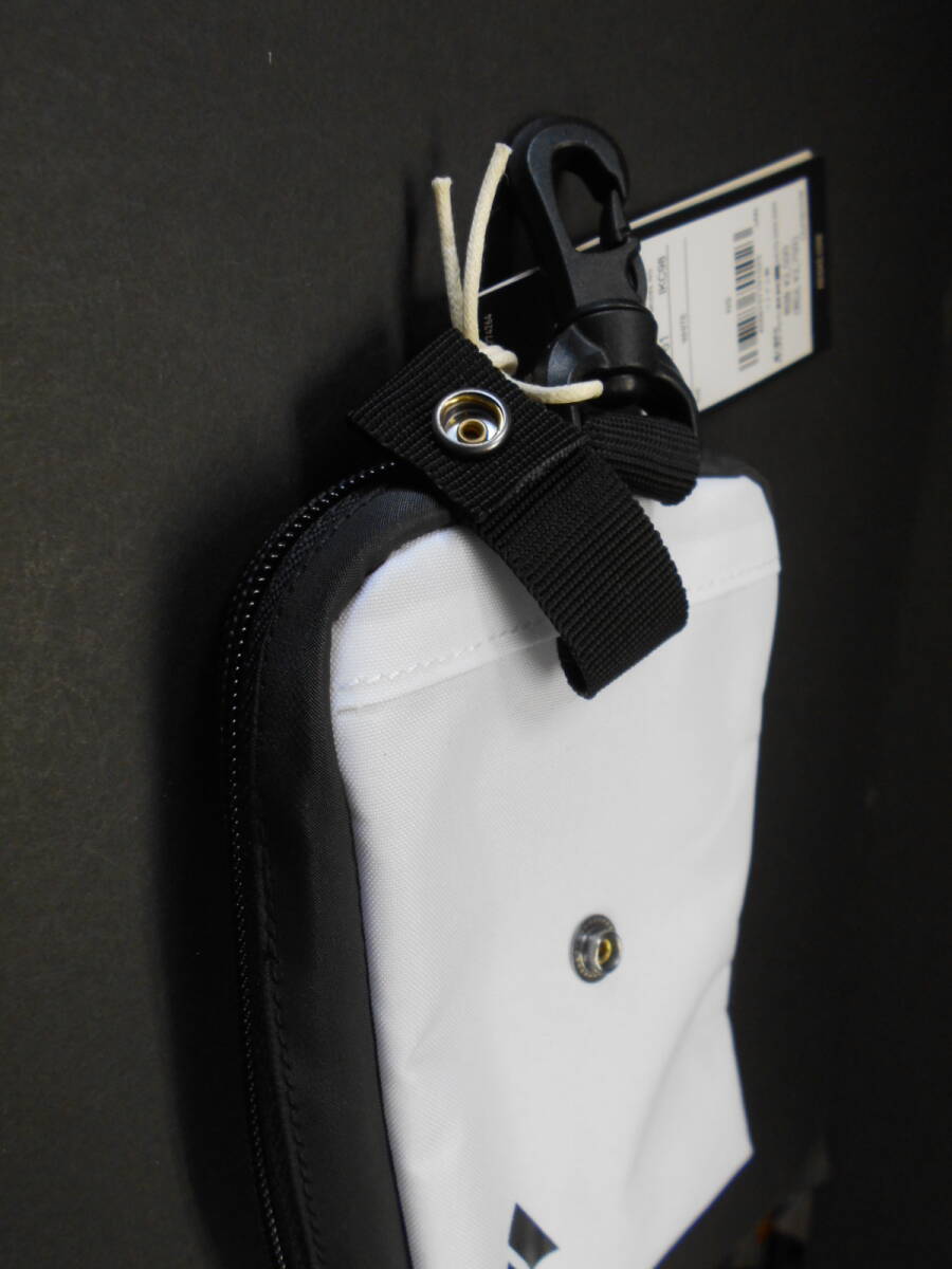 内側は柔らかな起毛素材を使用。フック付きでバックやカートに取り付けて使える便利なアイテムです。