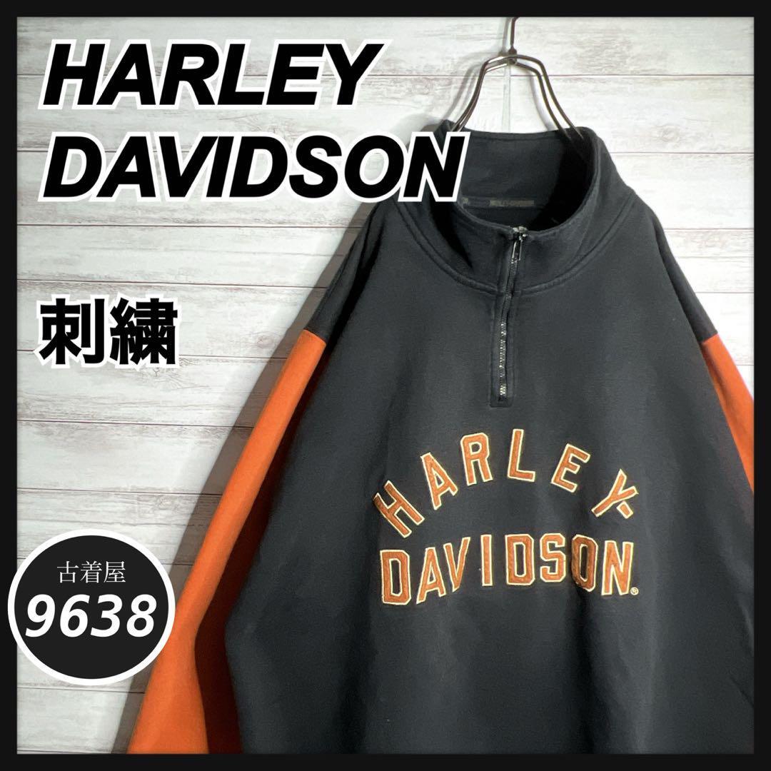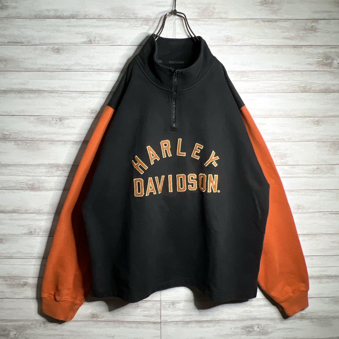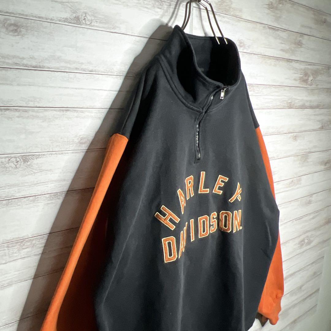 【入手困難!!】ハーレーダビッドソン 刺繍 ゆるだぼ トレーナー ハーフジップ バイカラー 重ね着 VINTAGE 90’s 一点物 希少 スウェット パーカー フーディ