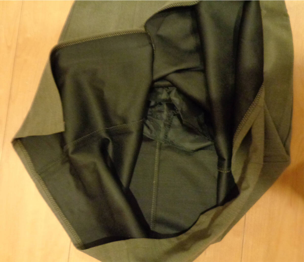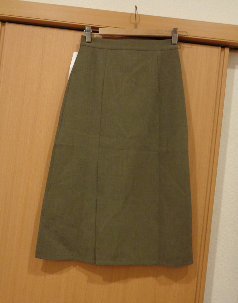 サイズはSでスカートになります収縮性のある生地で裏地はついてます。表地は薄手のような素材に見えるのですが、裏側を見ると黒地で風通しの少ない温かみのあるような素材になってます。
