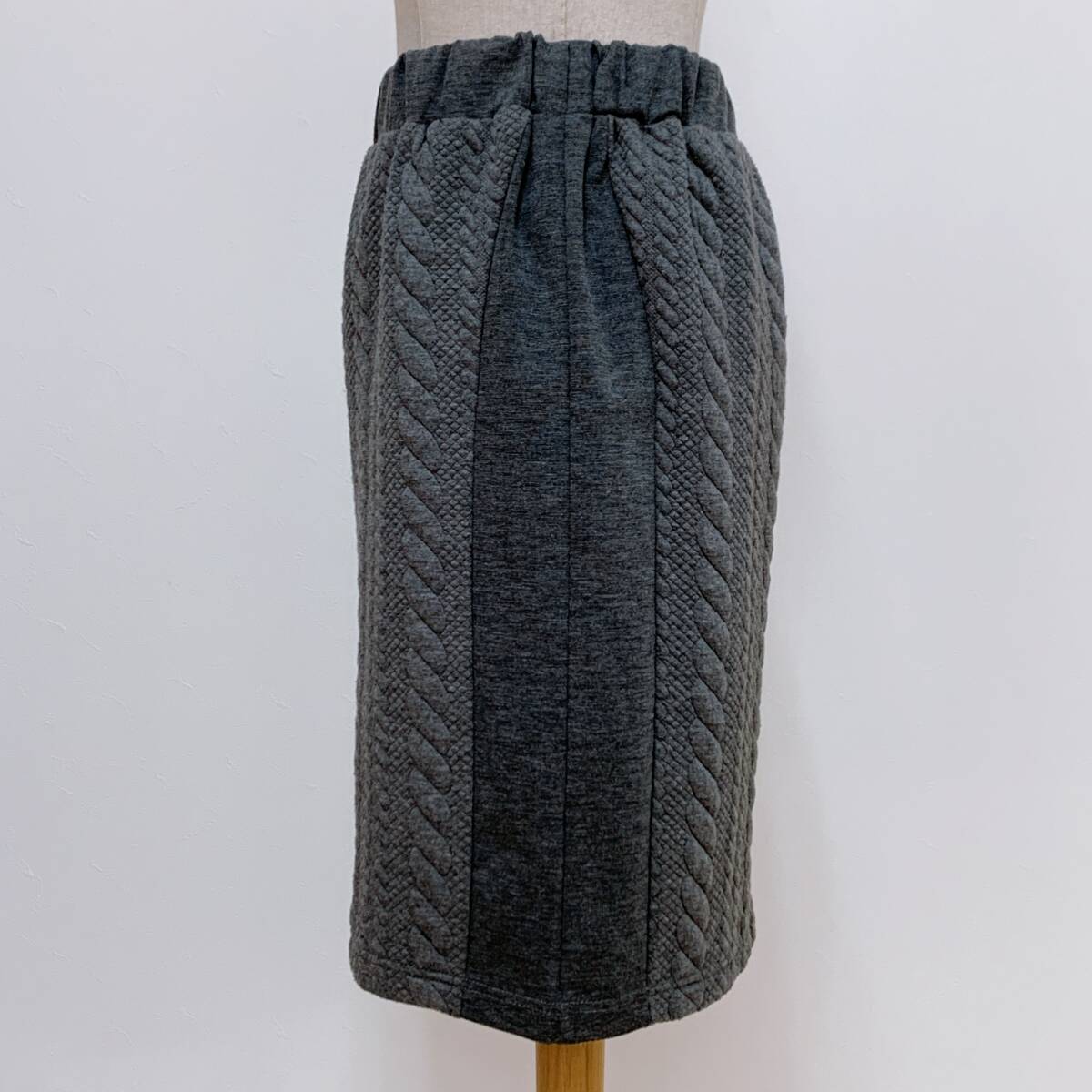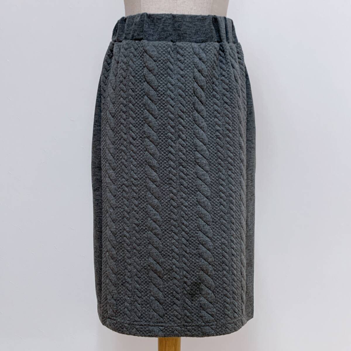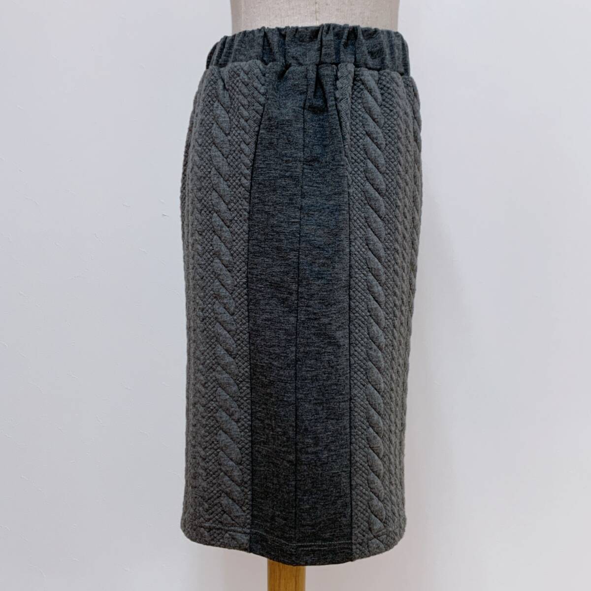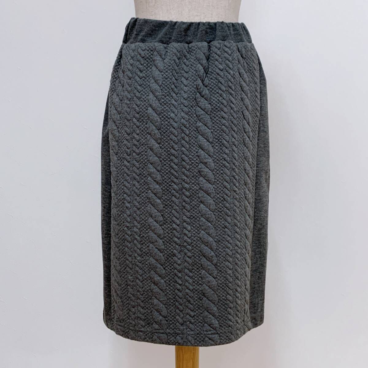 YH1246 SHINNOSUKE シンノスケ レディース ウール スカート ウェストゴム ひざ下丈 グレー Mサイズ カジュアルスタイル お洒落 万能 USED