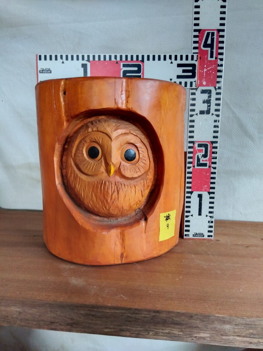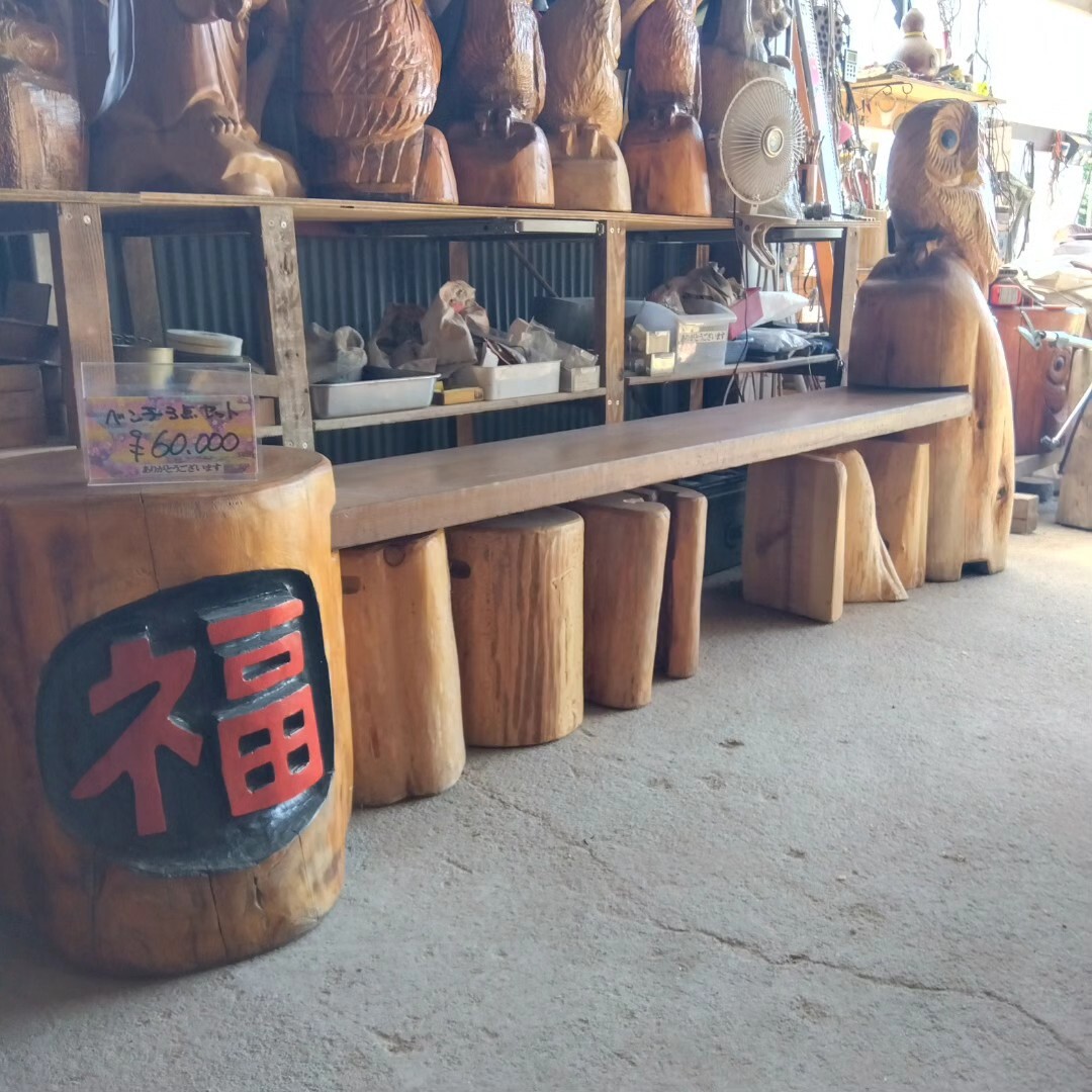 裏山の桧(ひのき)の木を間伐した丸太をチェンソーアートで自作した作品です。自然木特有のひび、割れ腐れ有りますし、今後、カビなども出たりしますので、ご理解、ご納得いただける方にお願いします。画像からご判断、ご納得いただける方にお願いします。また、画像7枚目以降は作業場兼工房風景です。ふくろうや手造り木工品多数、展示、販売もしてますから、興味のある方は見学だけでも大歓迎ですから、質問から予約後にご都合でお越し下さい。発送はおてがる配送の100サイズに成ります。尚、金、土、日、祝日はフリーマーケットやハンドメイドマーケット出店の場合、翌日の発送に成りますが、即決価格ですから、タイミングみて、ご購入いただけたら、スムーズな発送出来ます。宜しくお願いします。ありがとうございます。