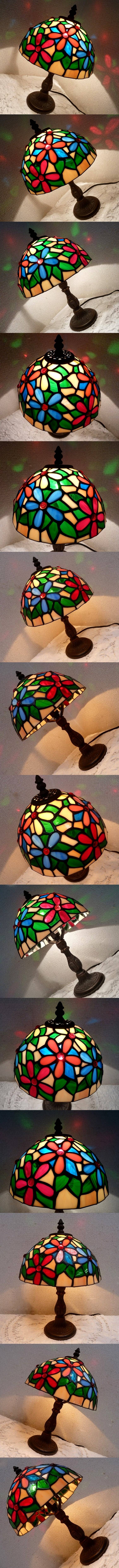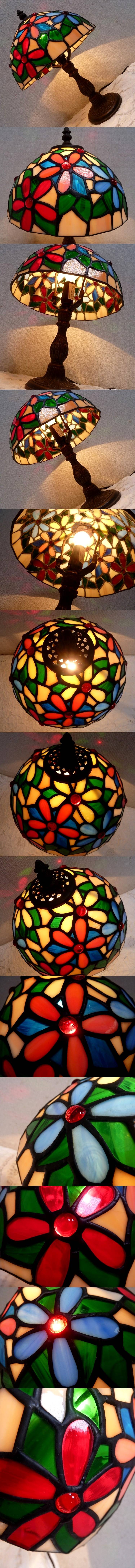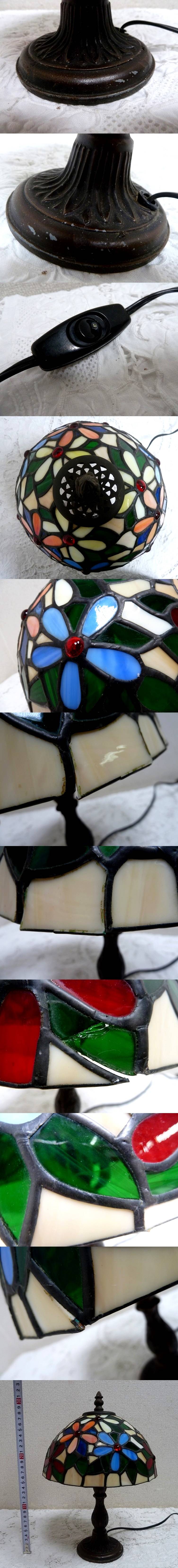 (☆BM)ステンドグラス テーブルスタンド 卓上照明 高さ31.5㎝ カラフル ランプ 小ぶり ライト ガラス 花 フラワー 可愛い レトロ