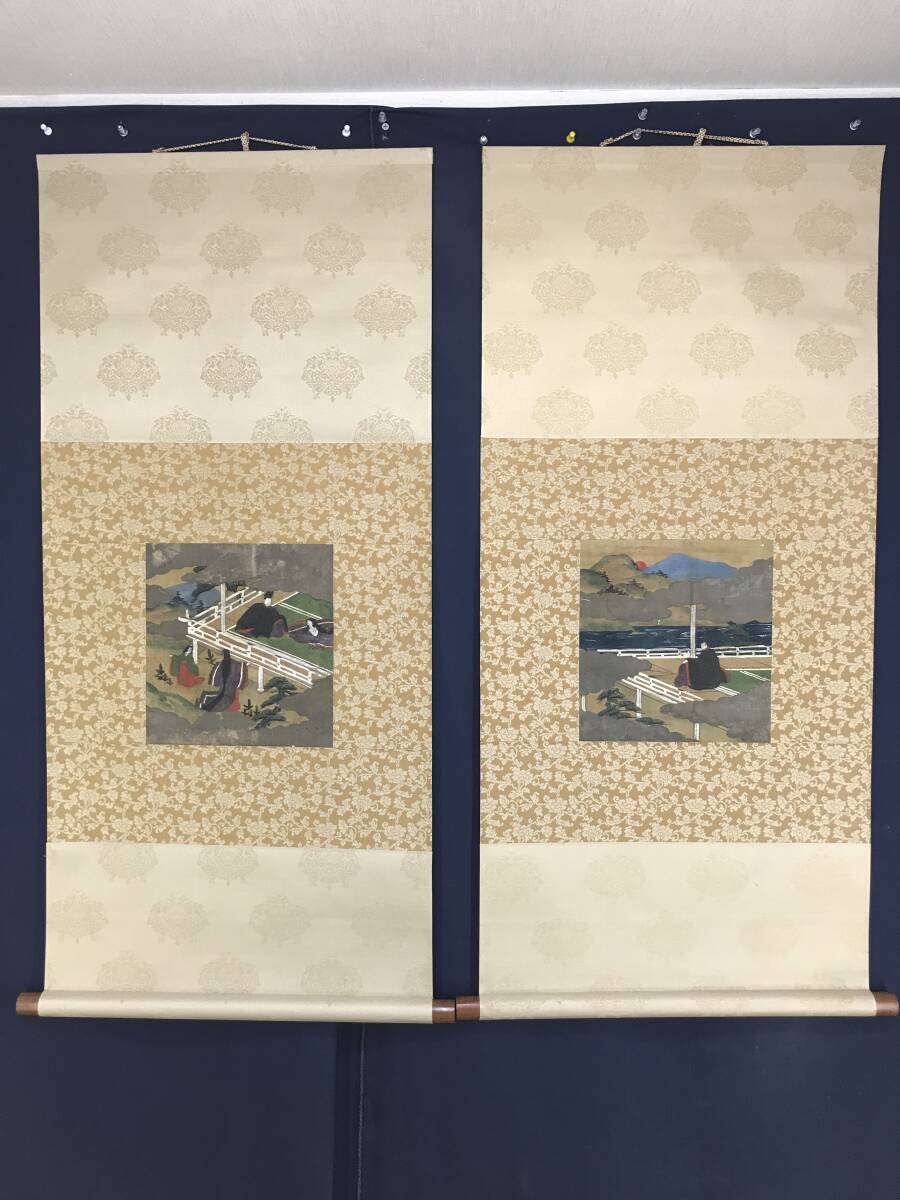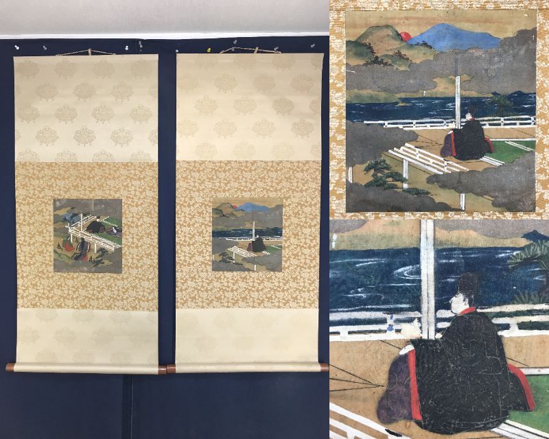 作者不詳/古画/土佐絵/二幅/人物図/宮中画/公家/女官/掛軸☆宝船☆AG-596