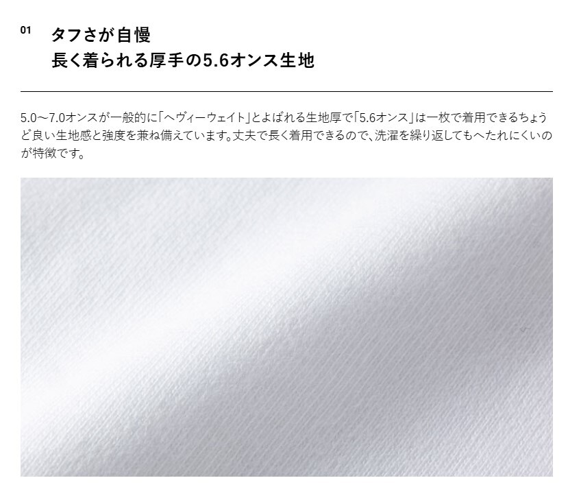 5.6オンスはへヴィーウェイトの代表的な生地のひとつ。