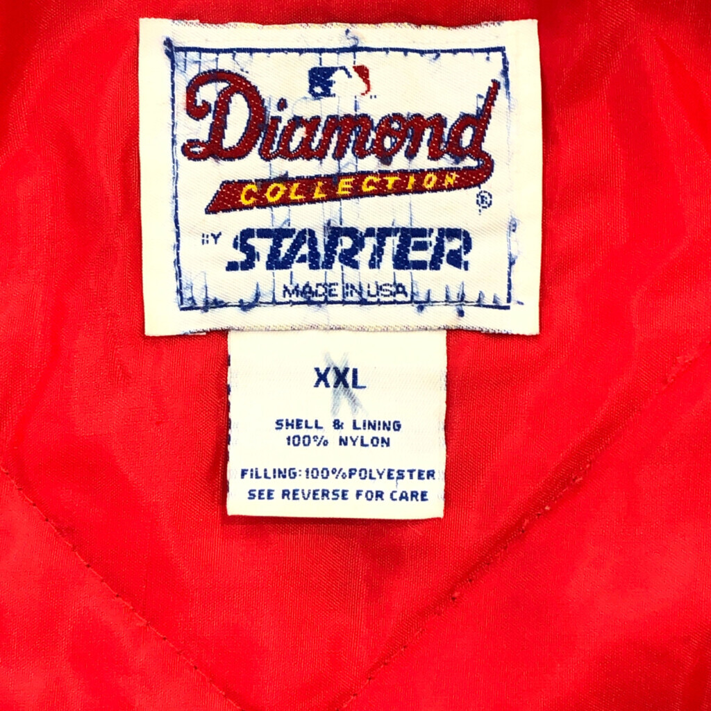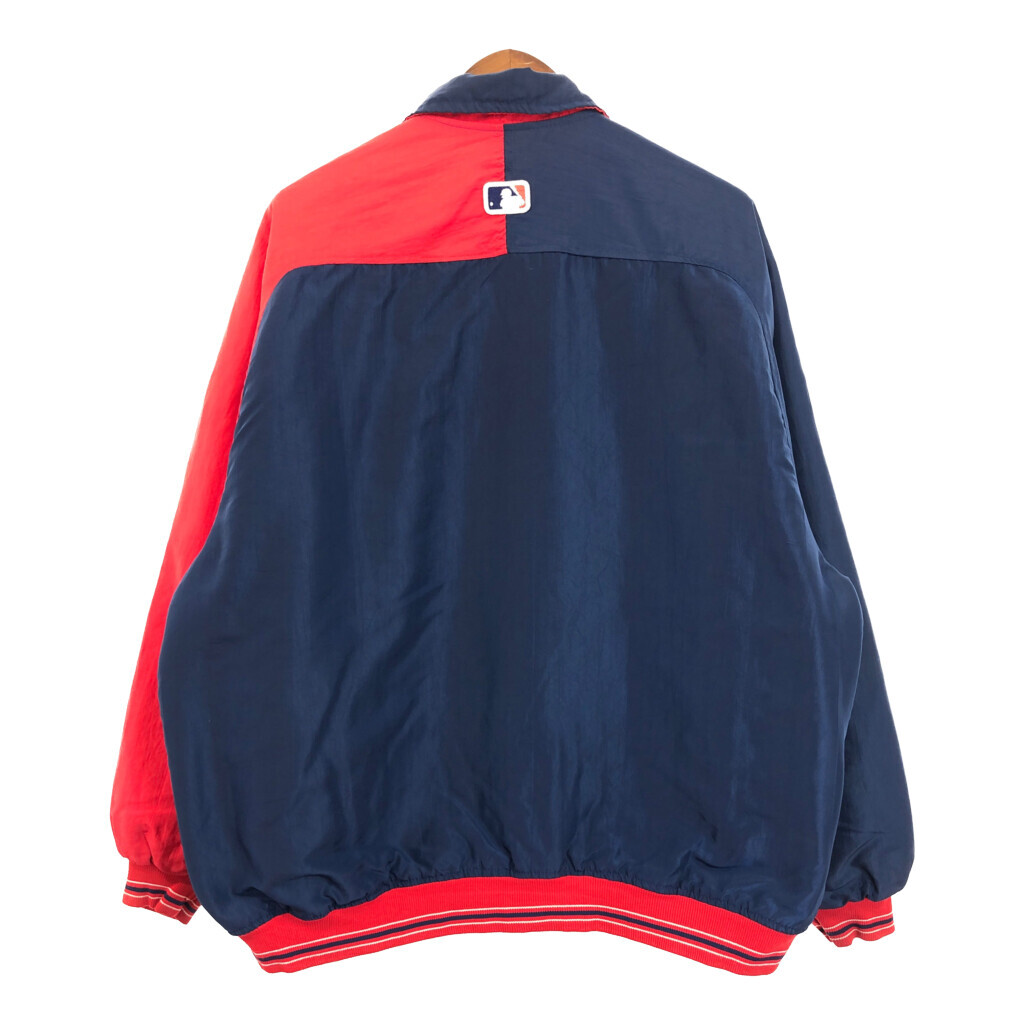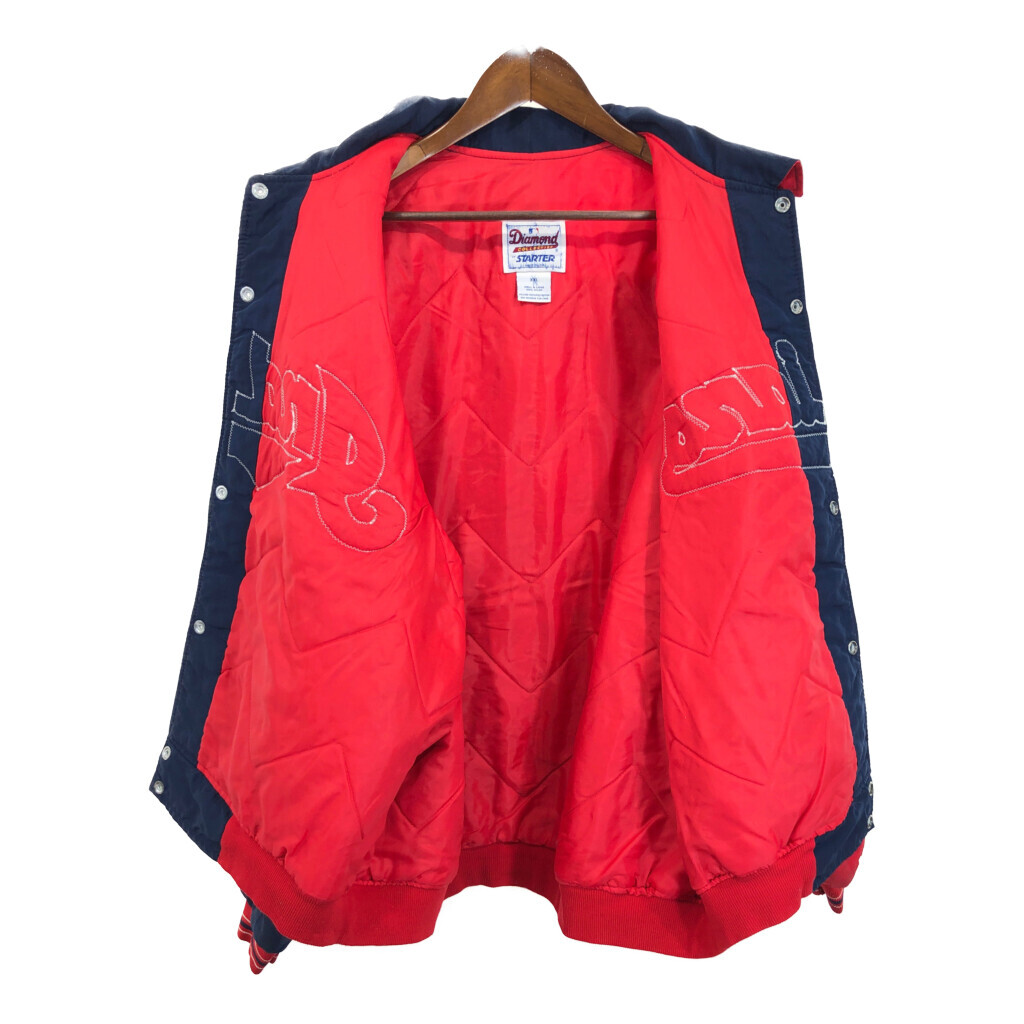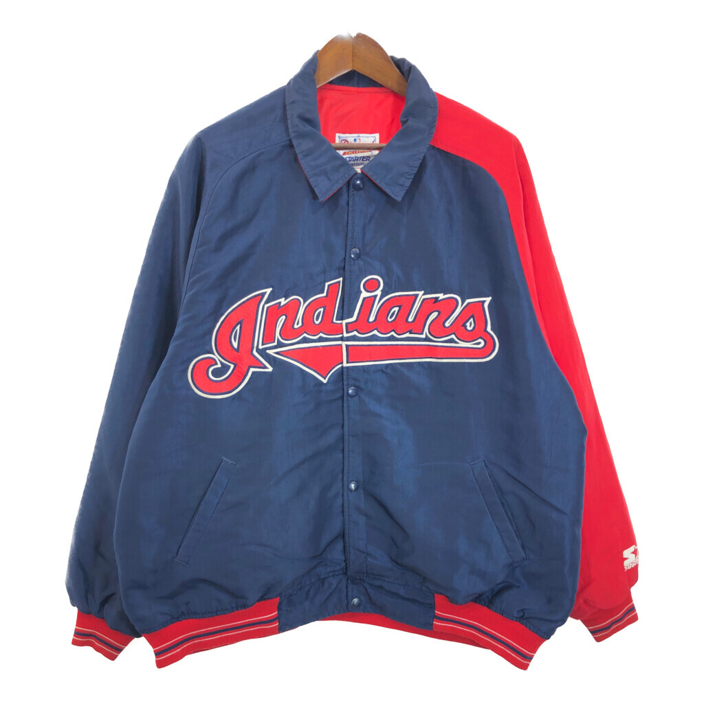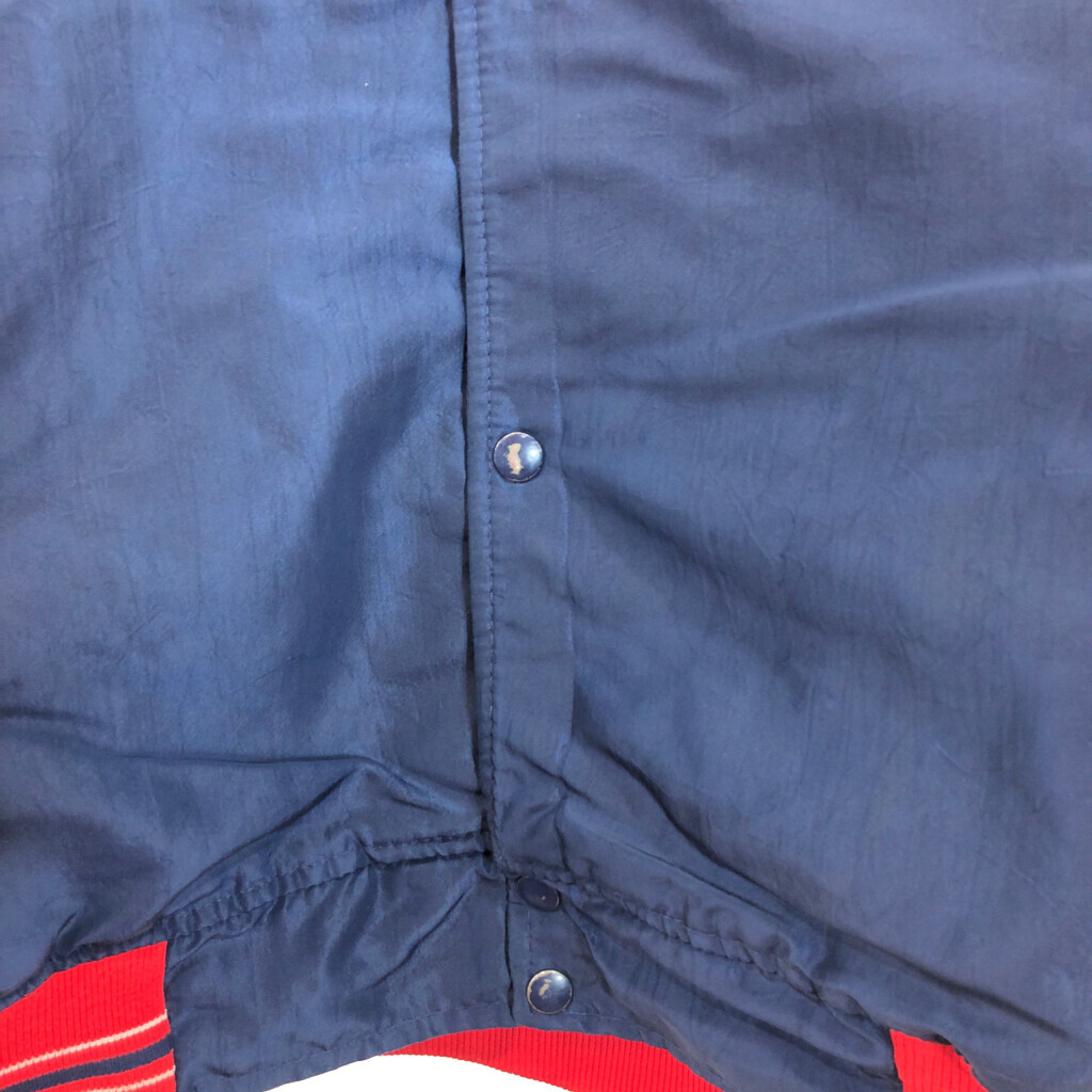 [商品管理番号] R6406 [ブランド] STARTER/スターター [サイズ] XXL [実寸サイズ] 着丈:約74cm 身幅:約76cm 裄丈:約94cm 袖下丈:約52cm [主な素材] 表地 : ナイロン 裏地 : 13848 中綿 : 13897 [色] ネイビー [仕様] 生産国 : USA製 80年代 大きいサイズ、プロチーム MLB クリーヴランド・インディアンズ [状態] 汚れ:袖、腹部 | |||