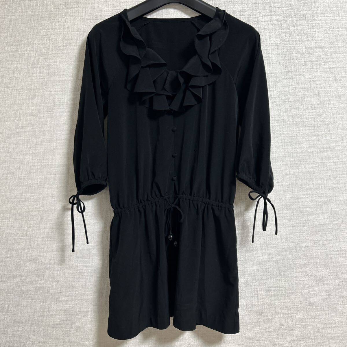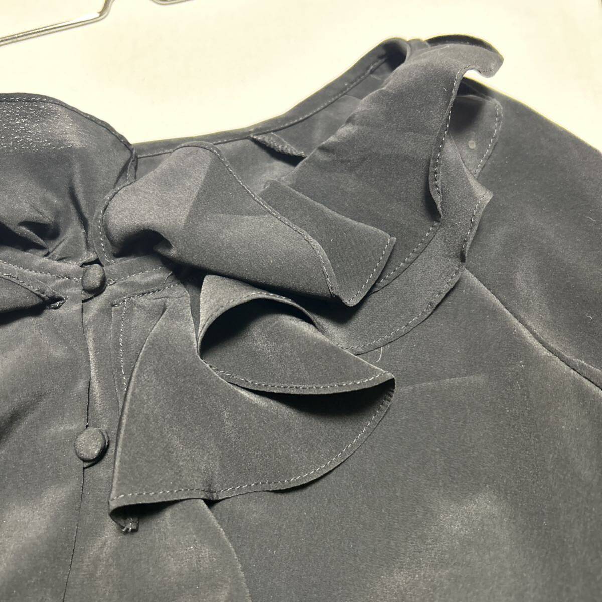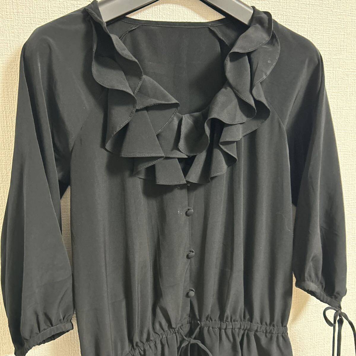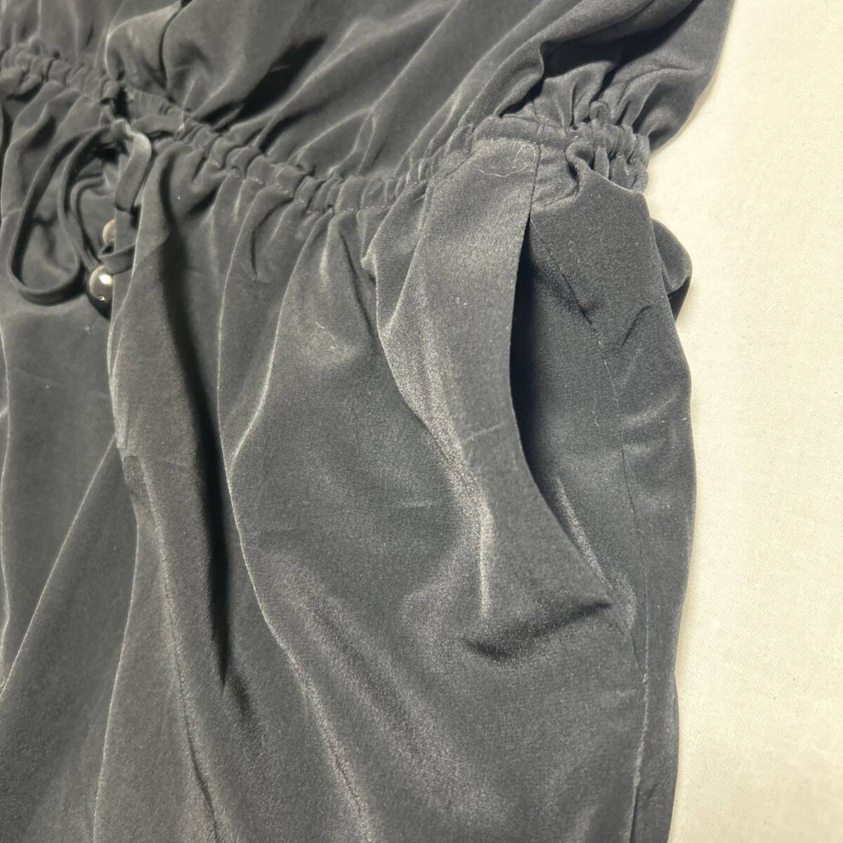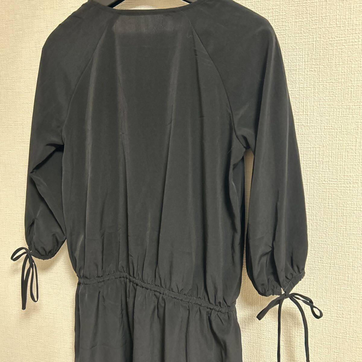 着丈79cm 身幅45cm 袖丈47cm ウエスト幅(ゴム入りで伸縮性あり)34cm 少し光沢感のある素材です。 目立ったダメージありません。 カラーブラック 柄無地 シルエットフレア 季節オールシーズン