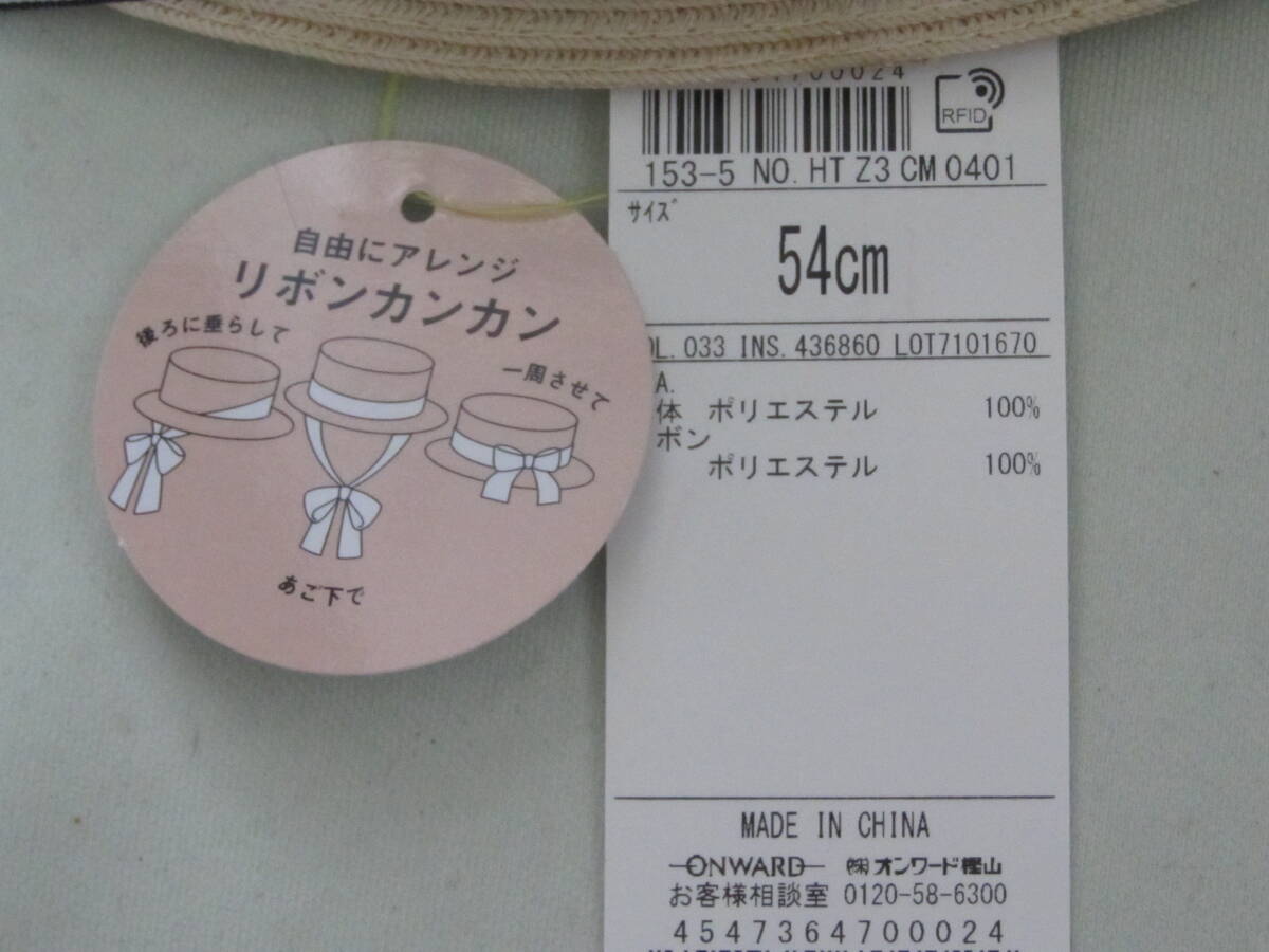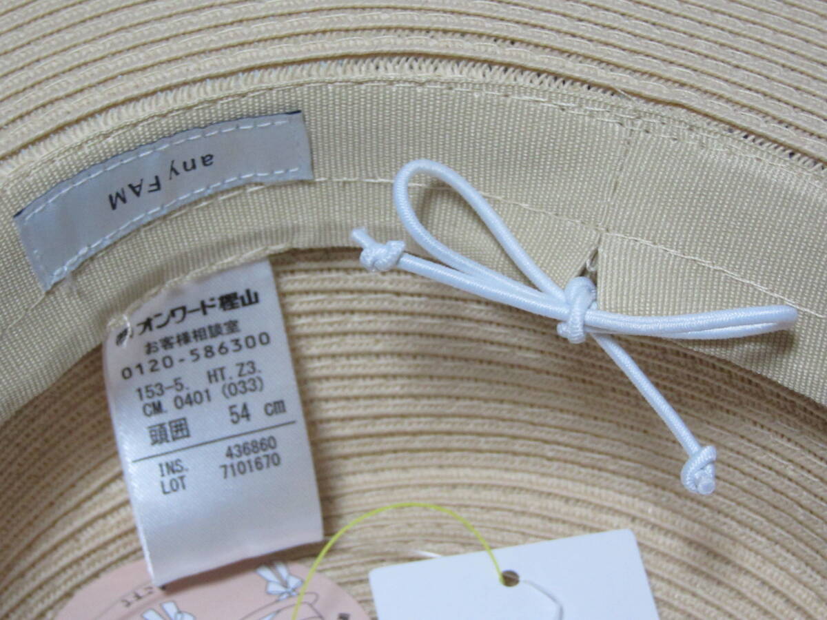 新品 組曲 anyFAM エニィファム 3ways リボン付 カンカン帽 日よけ UV対応 麦わら帽子 子供用 女の子 54cm 白 ベージュ ネイビー UVカット