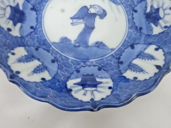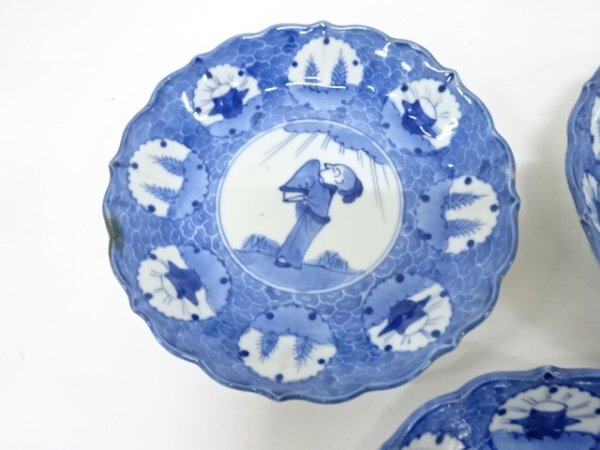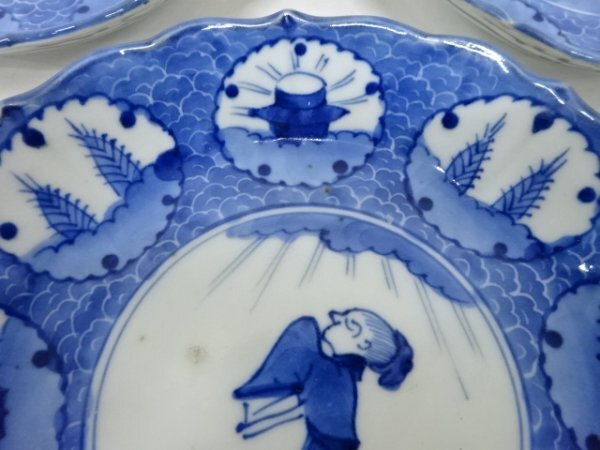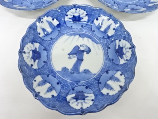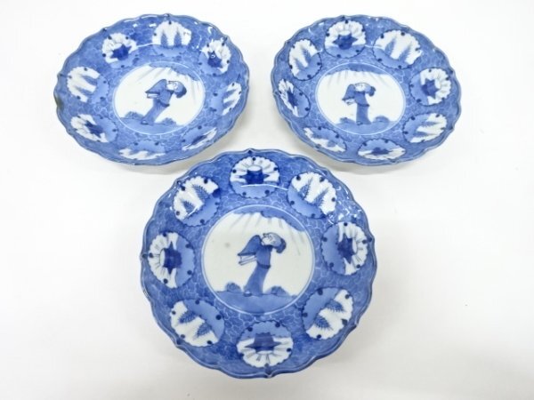 ys7134145; 古伊万里 染付 人物輪花皿3客揃【道】