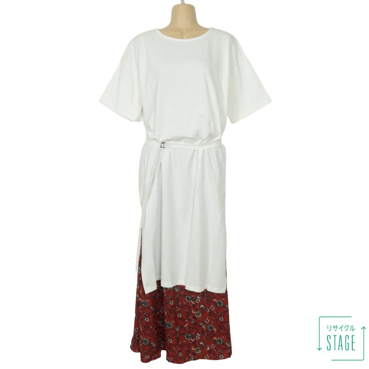 【新品タグ付き】Cutie Blonde キューティーブロンド★2点セット 半袖ワンピース 花柄ロングスカート サイズL 白系 レンガ色系 z8753