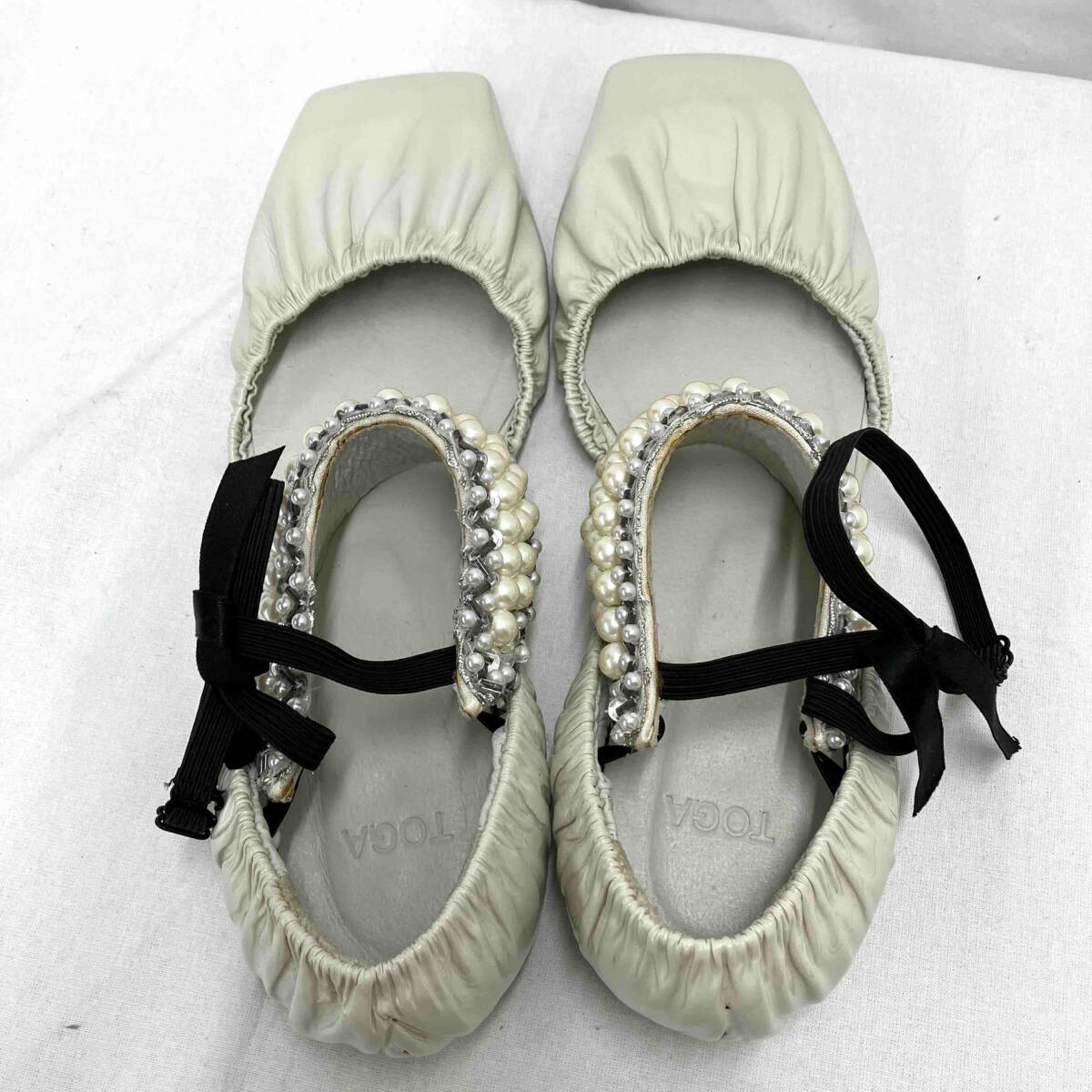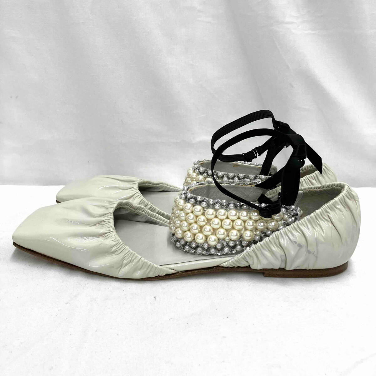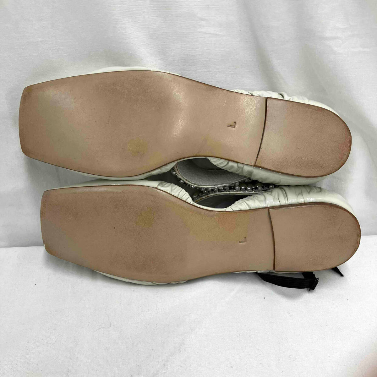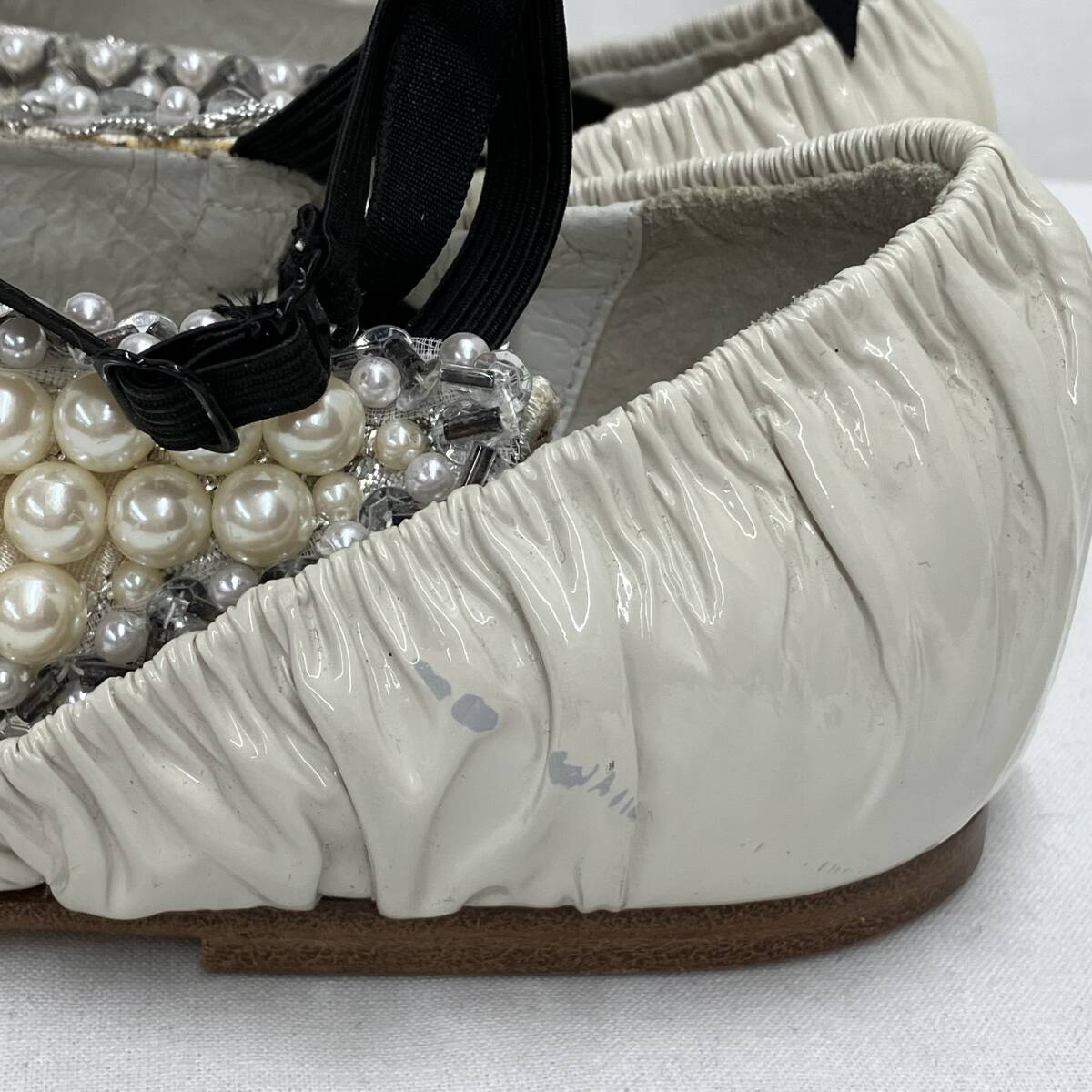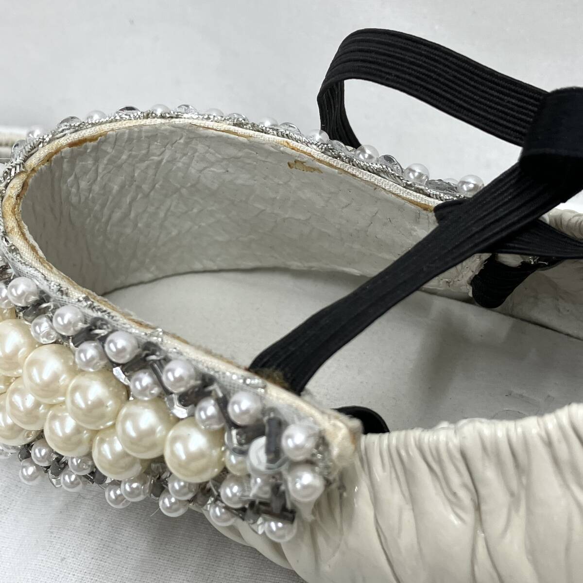 | パールのストラップの裏にイタミがあります。左足側面にスレがあります。パールやビーズに欠損はありません。 |