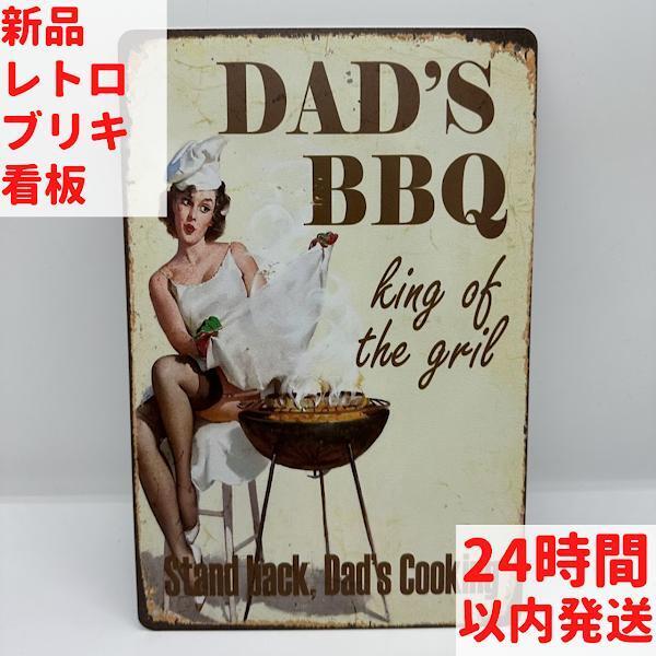 「DAD'S BBQ」というキャッチフレーズとレトロなイラストが、アメリカンスタイルの温かい雰囲気を演出します。