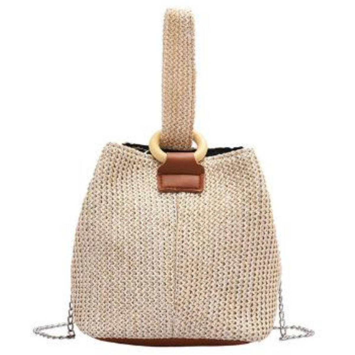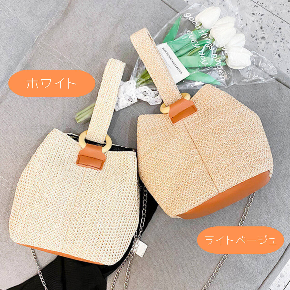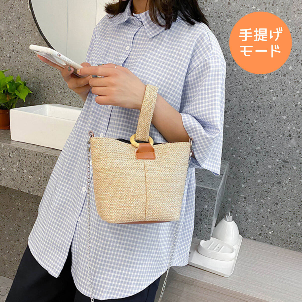 センターのワンハンドストラップ通しリングとナチュラルなメッシュ柄が特徴のリゾート感あふれるおしゃれなワンハンドルバッグです。