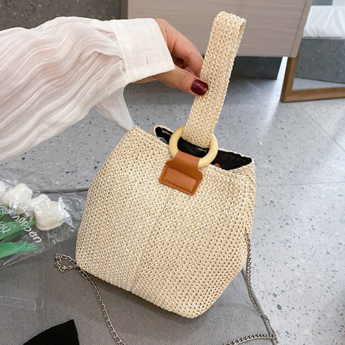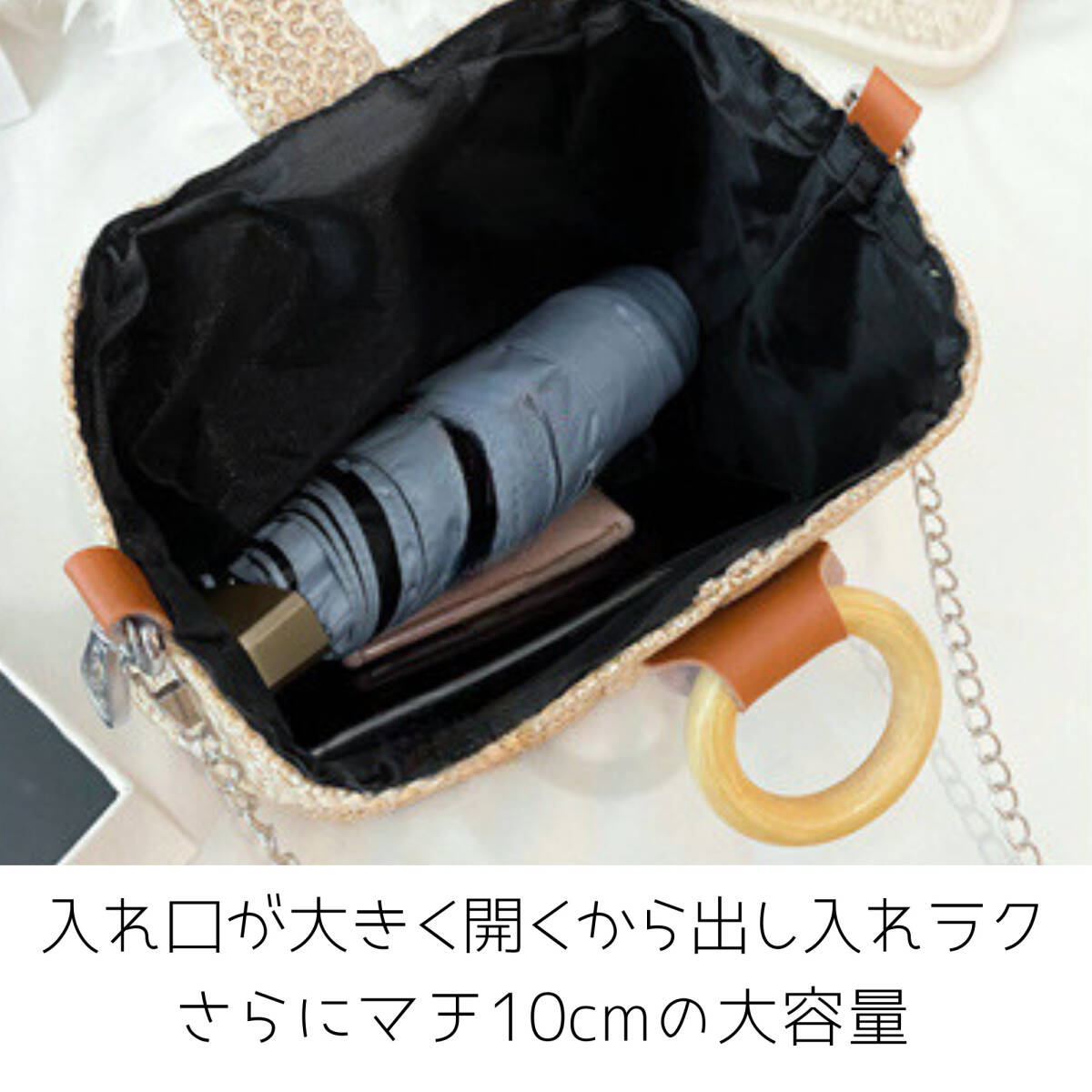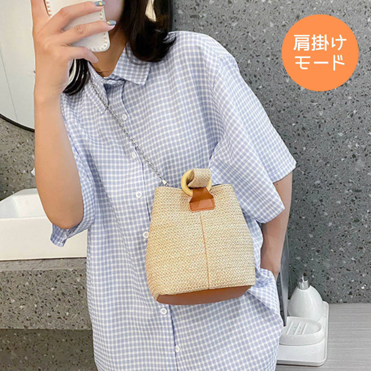 センターのワンハンドストラップ通しリングとナチュラルなメッシュ柄が特徴のリゾート感あふれるおしゃれなワンハンドルバッグです。