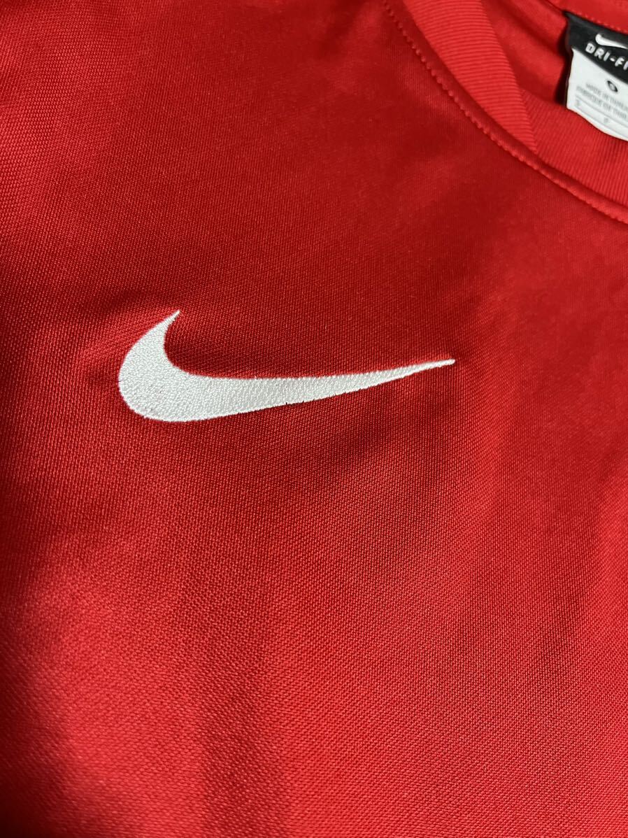 新品NIKEDRI-FIT赤、ロゴ白(刺繍)半袖ストレッチトップス