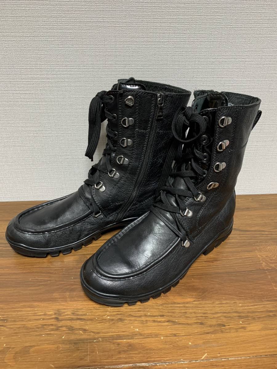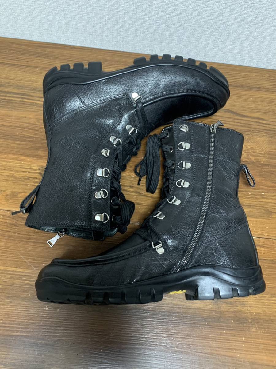 [Neil Barrett] サイドジップ レースアップ レザーコンバットブーツ 40 本革 ブラック ビブラムソール ニールバレット