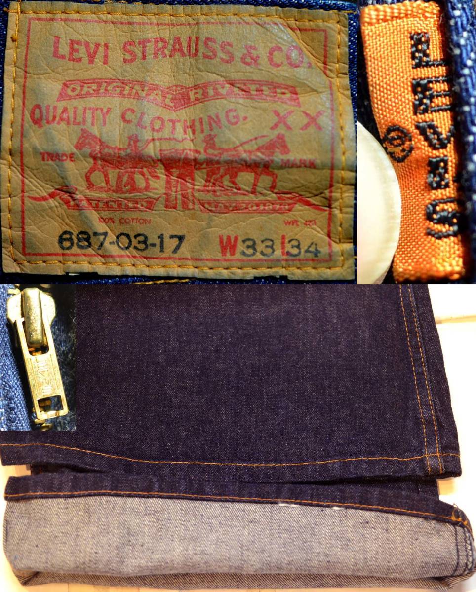 687-0317のデッドストックです。『ディテール紹介』ビッグE、ビッグベルです。『状態』完全デッドストック、新品、未使用。保存状態はよく、気になるダメージはありません。この状態で入手するのは非常に困難だと思います。 『色落ち、特徴など』製造数が極端に少なく、入手は極めて困難だと思います。