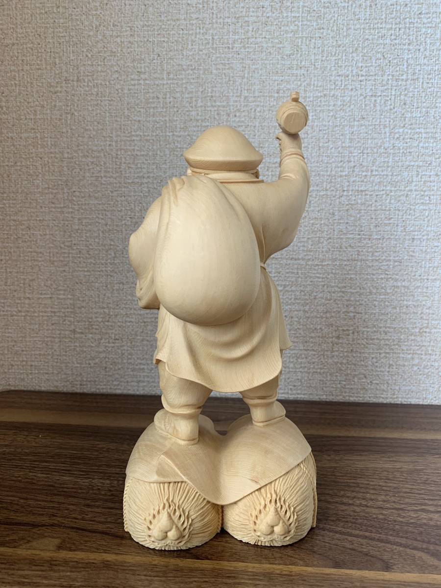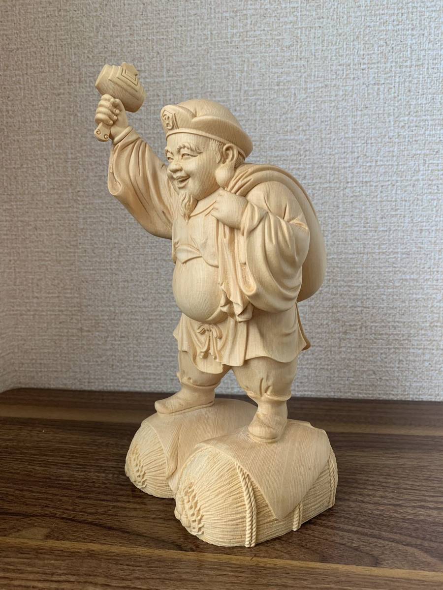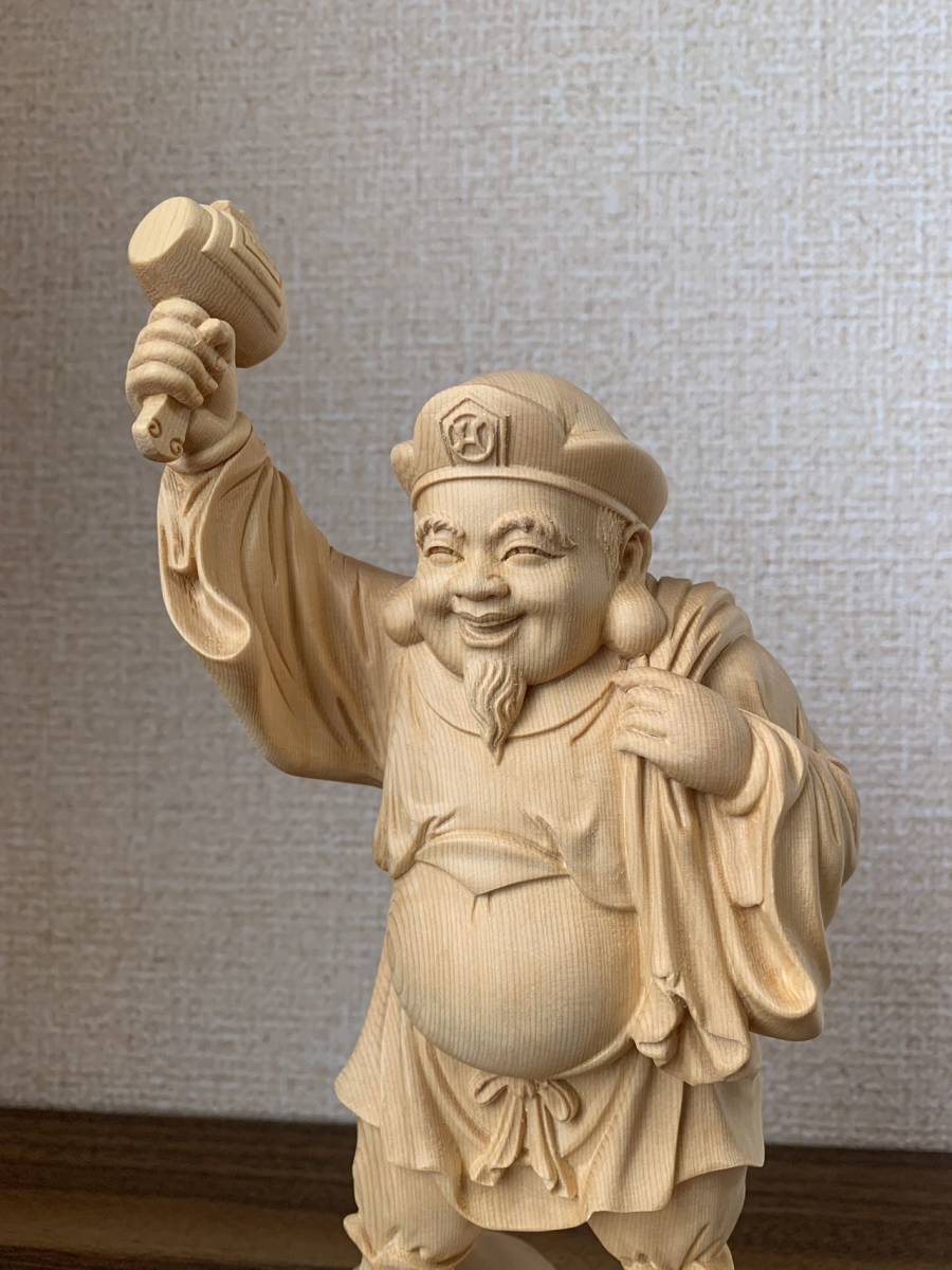 仏像 大黒天 大黒天像 檜木 木彫 仏具 (約)高26cm×幅12cm×奥行11cm