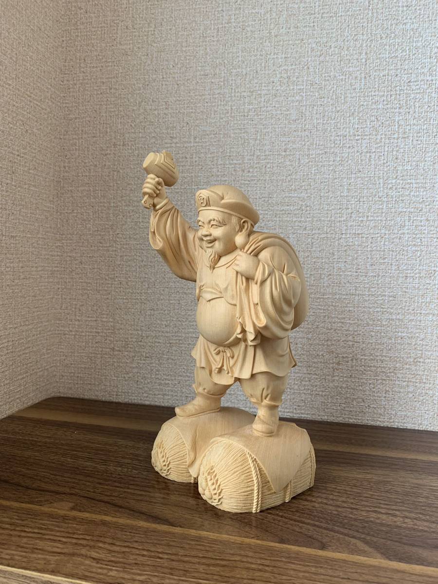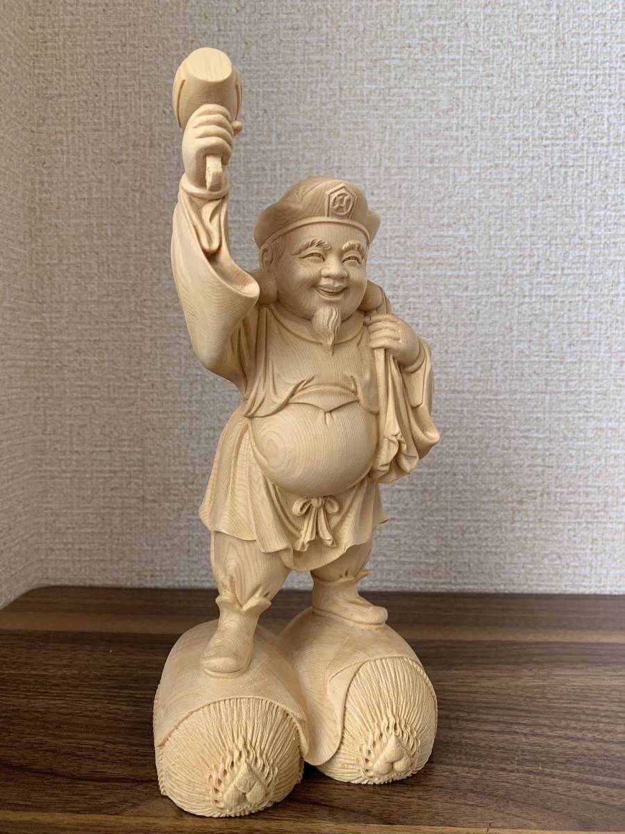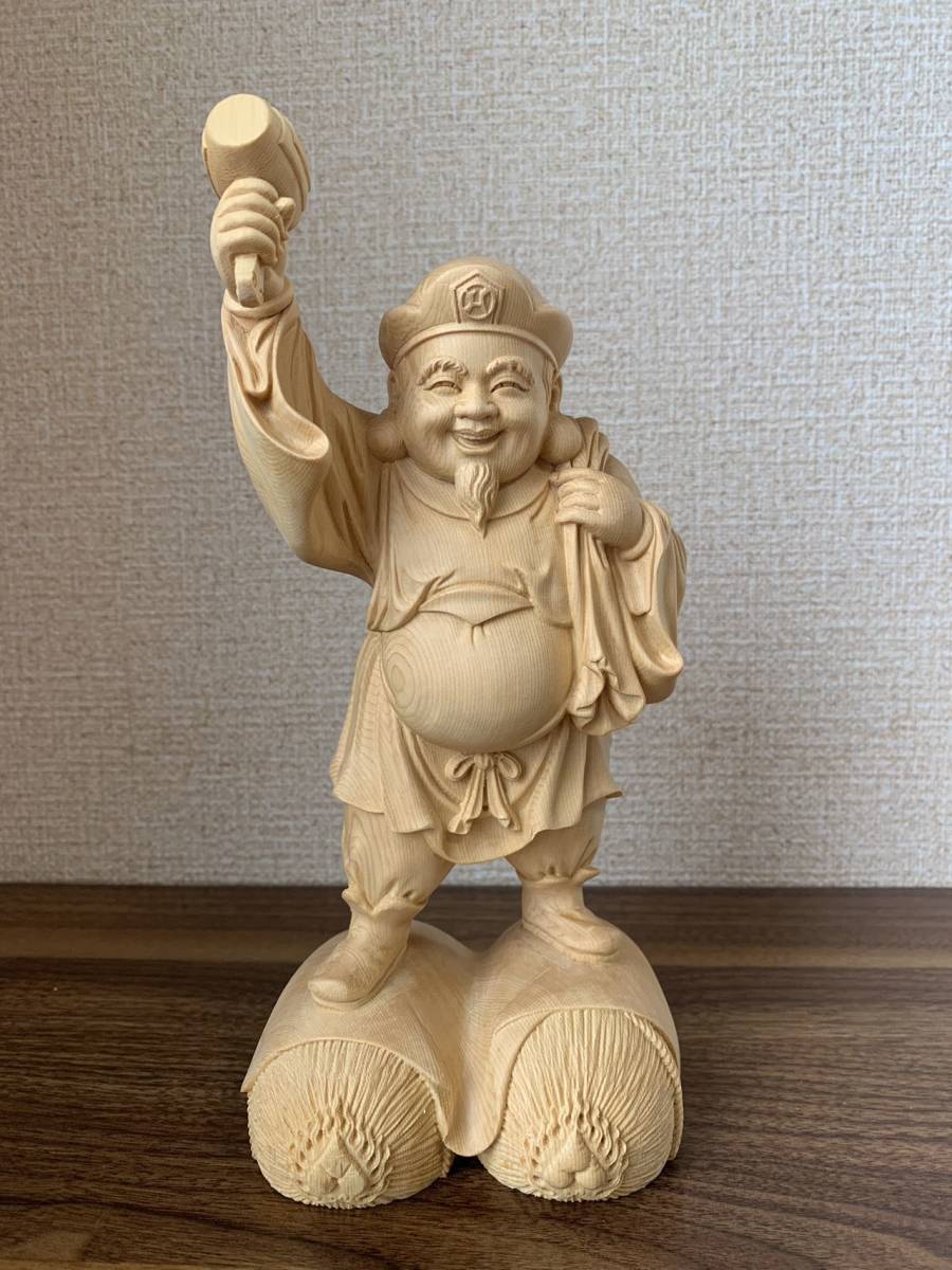 仏像 大黒天 大黒天像 檜木 木彫 仏具 (約)高26cm×幅12cm×奥行11cm